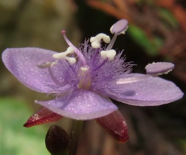 ![]() 上面照片:小花老師拍攝 (花瓣3枚,倒卵圓形,粉紫色,花心密被條毛;可孕雄蕊3枚,不孕雄蕊3枚,雌蕊柱頭單一) |