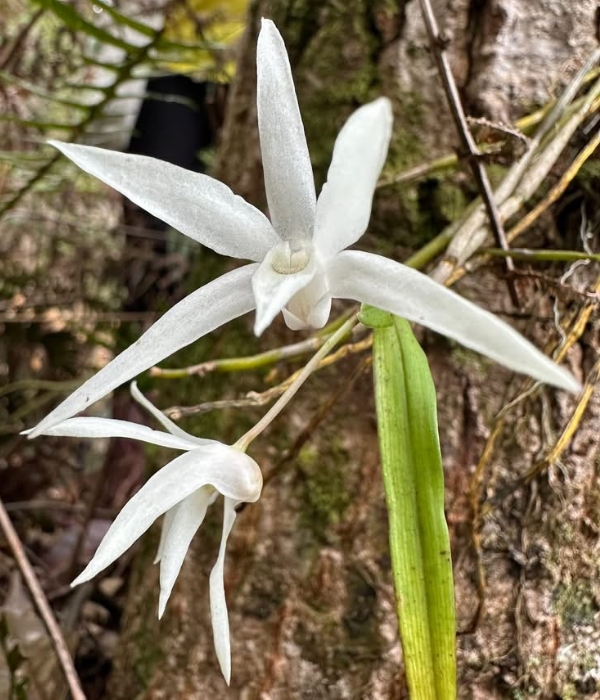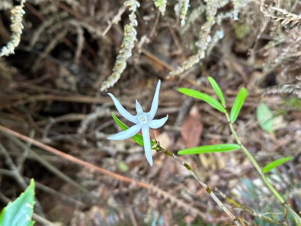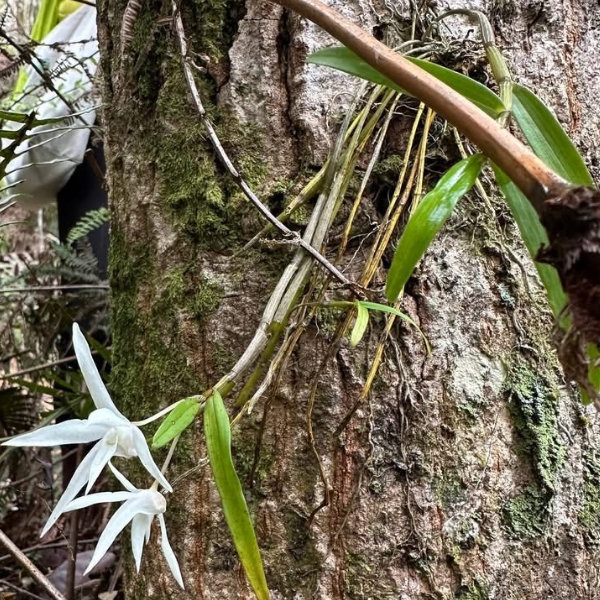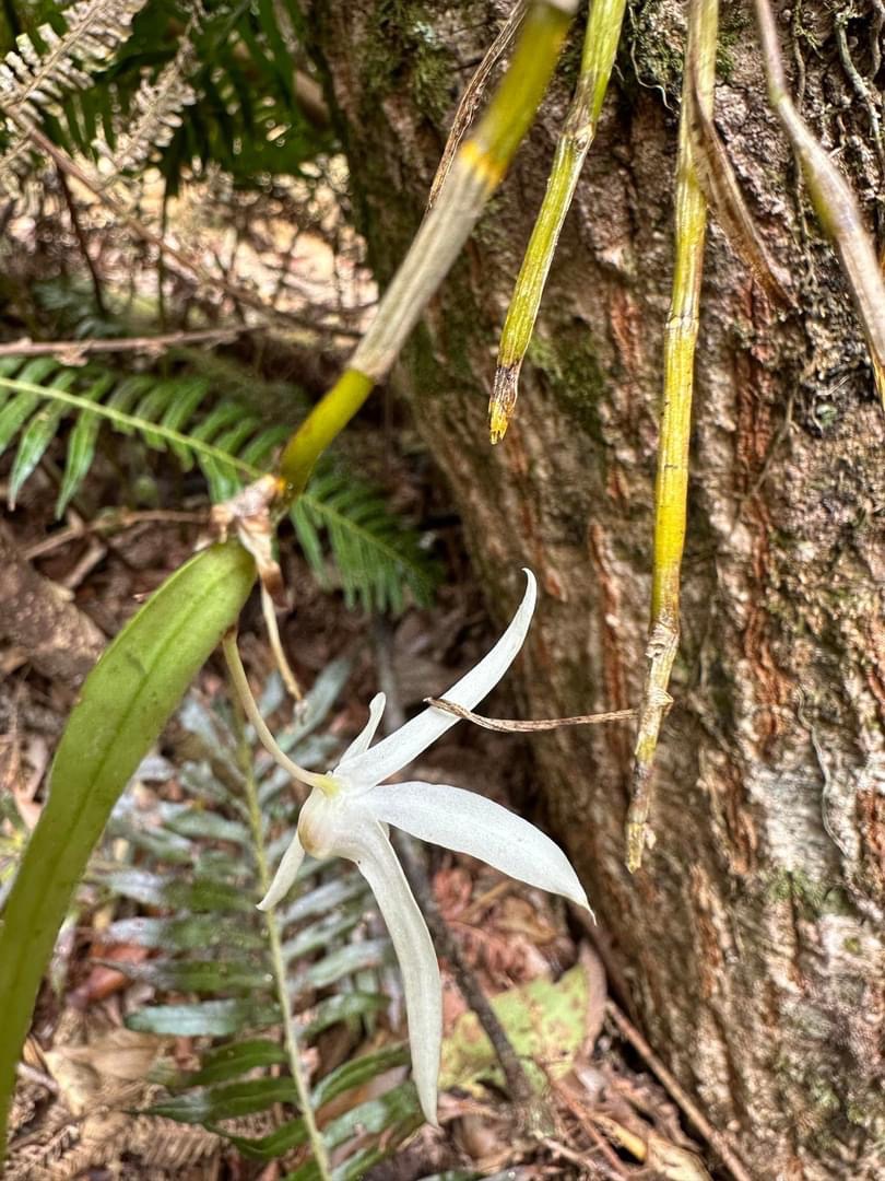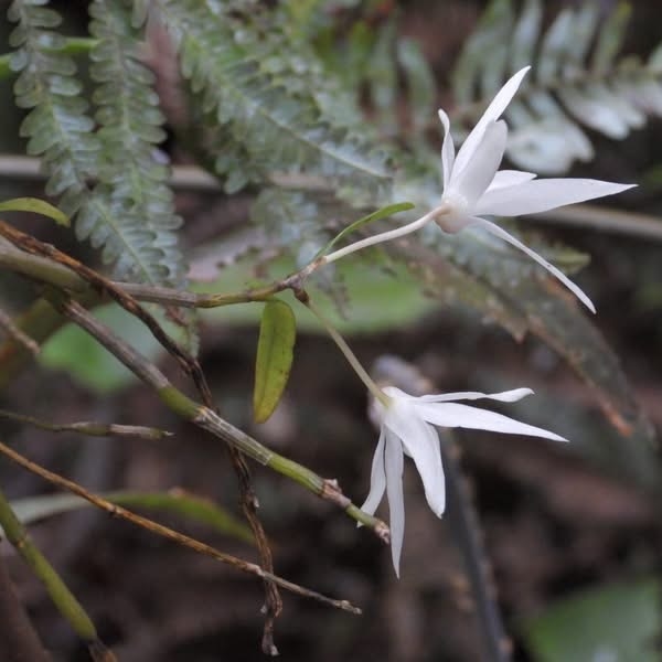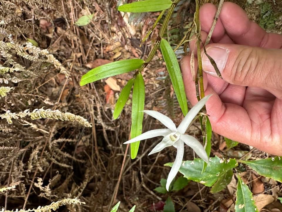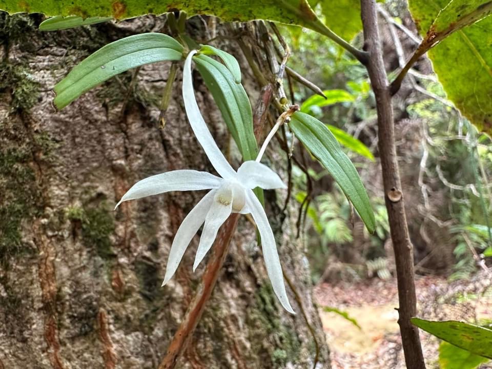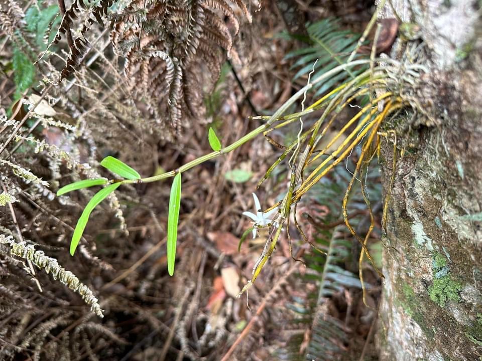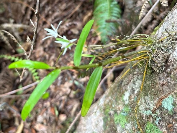(原生種;世界植物在線 POWO 標示 Dendrobium moniliforme subsp. okinawense = Dendrobium okinawense,皆為有效學名,標示原生於台灣和日本沖繩;維基百科標名沖繩石斛;台灣物種名錄20260324將此學名標示為無效學名;屬珍稀物種;查詢網路資料,此物種在台灣僅發現於台東太麻里及周邊區域,海拔約900到1150公尺;莖長40~70公分,下垂;葉長6~10公分;花瓣、花萼狹長,可達3~4公分,有濃郁的杏仁香味)