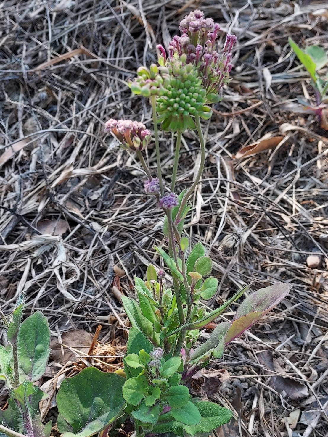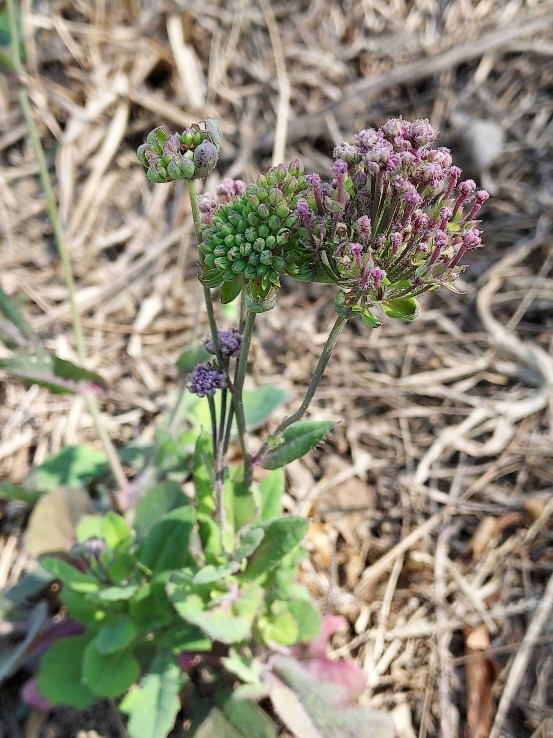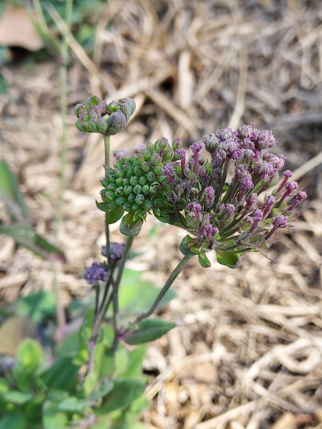 (原生種;原生於台灣、日本至非洲一帶;台灣物種名錄標名一點紅,別名葉下紅、紫背草;維基百科標名一點紅;一年生草本;單葉互生,琴葉狀羽裂至披針形,鋸齒緣,葉形變化大,葉背常呈現紫紅色(並非絕對);二分花序,頭花2~6枚;總苞長筒形,單層;頭花通常含蓄不展,或有小花開展;花蕾期呈現彎曲下垂,花冠紫紅色至粉紅色;瘦果顏色分成兩種,外圈紅棕色,內部灰白色,上端具冠毛,可藉由風力傳播繁衍;可作野菜食用)