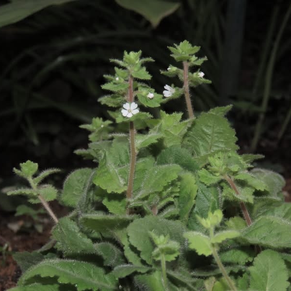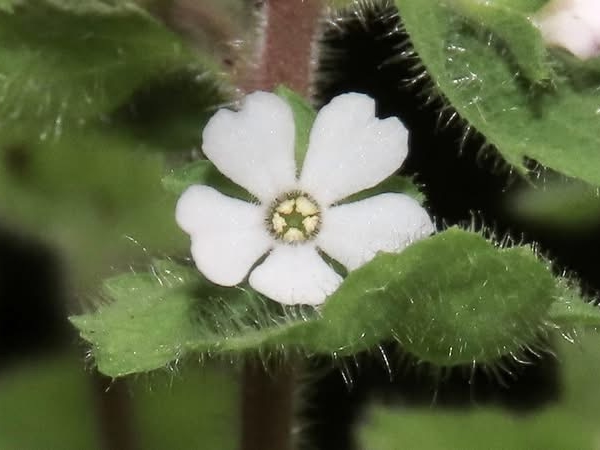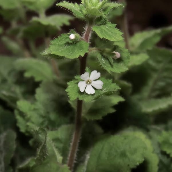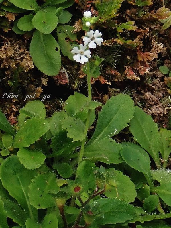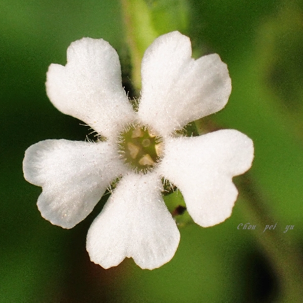![]() 上面照片:周佩玉拍攝 (直立草本;全株密被細毛;單葉互生,由下而上,由倒長卵形、橢圓形至闊卵形,鋸齒緣,下部葉具柄,上部葉無柄;花朵單生,腋生,於莖端排成總狀;花瓣5枚,白色,先端微凹) |