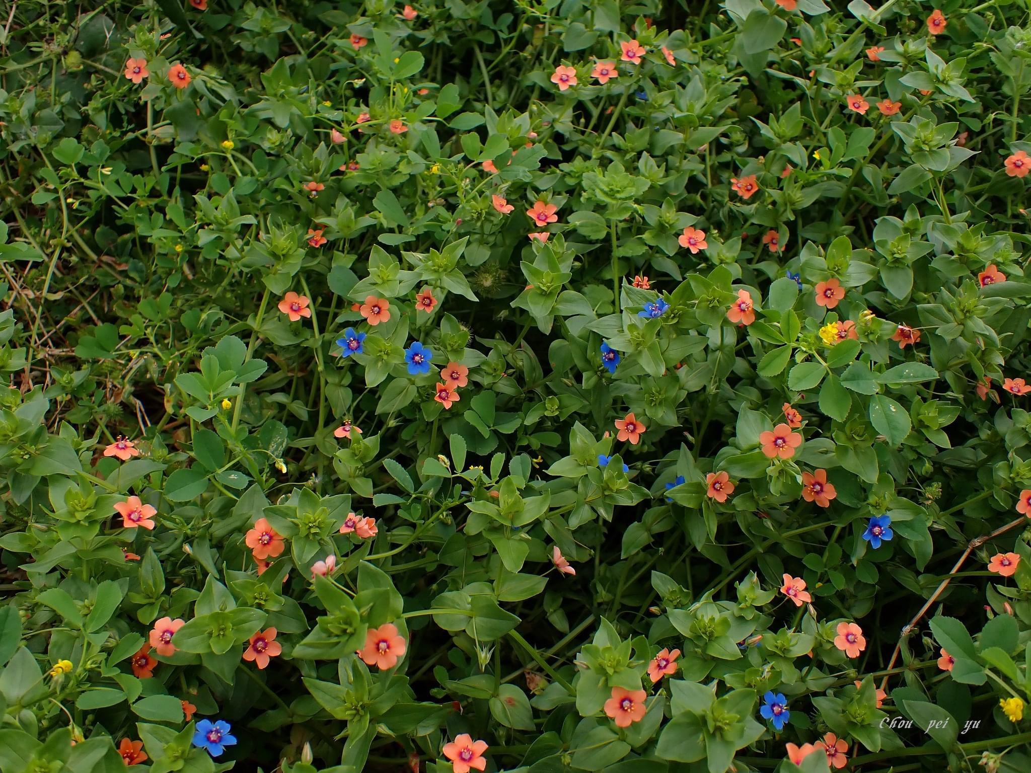 (歸化種;世界植物在線標示原生於歐洲、北非和中東;台灣物種名錄標名琉璃繁縷,別名橙花琉璃繁縷、瑠璃繁縷、琉璃繁縷,標示為原生種;草本)