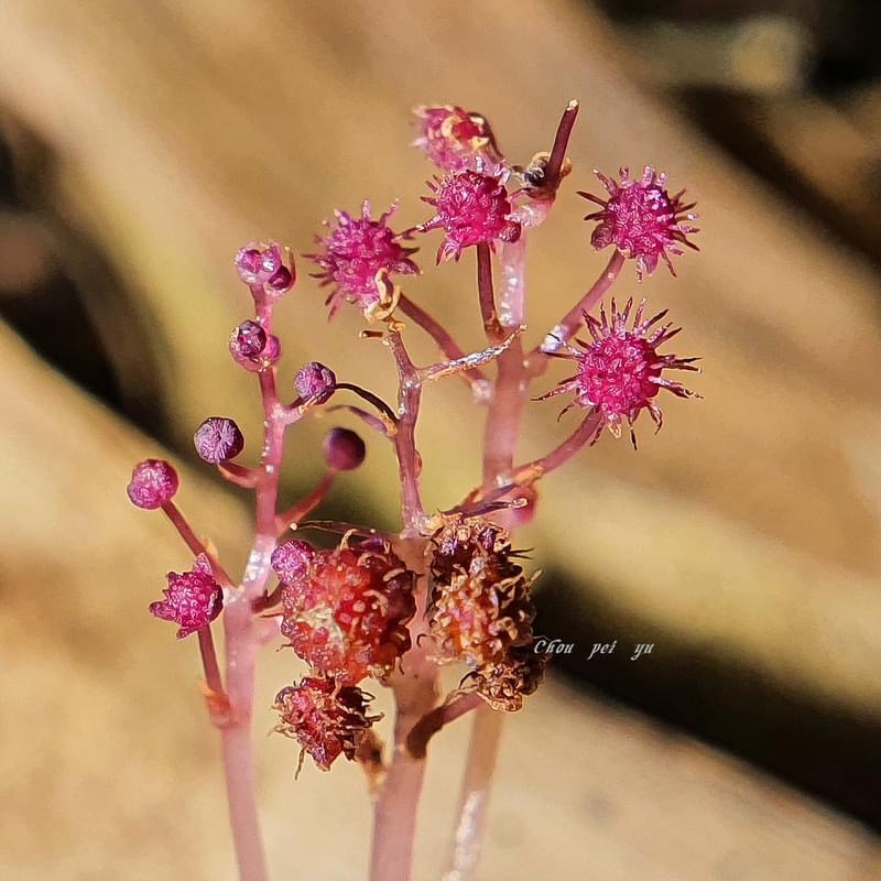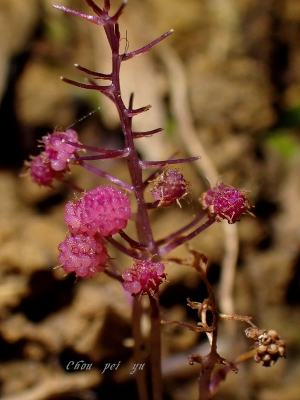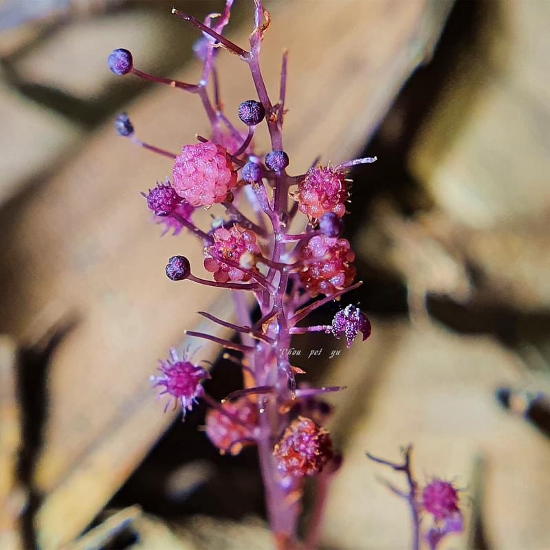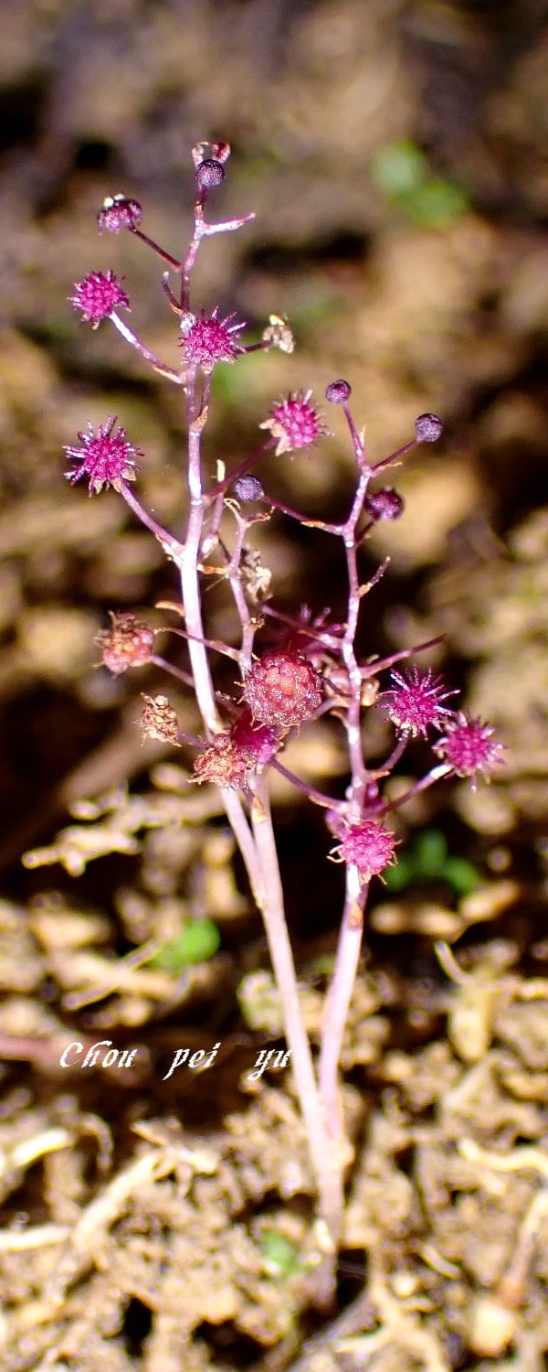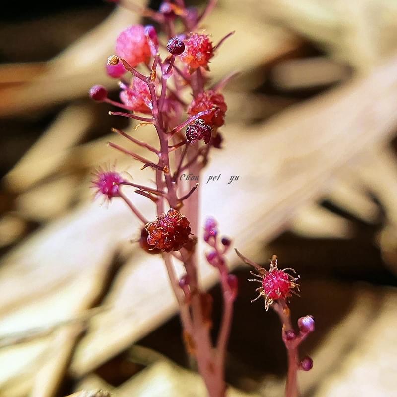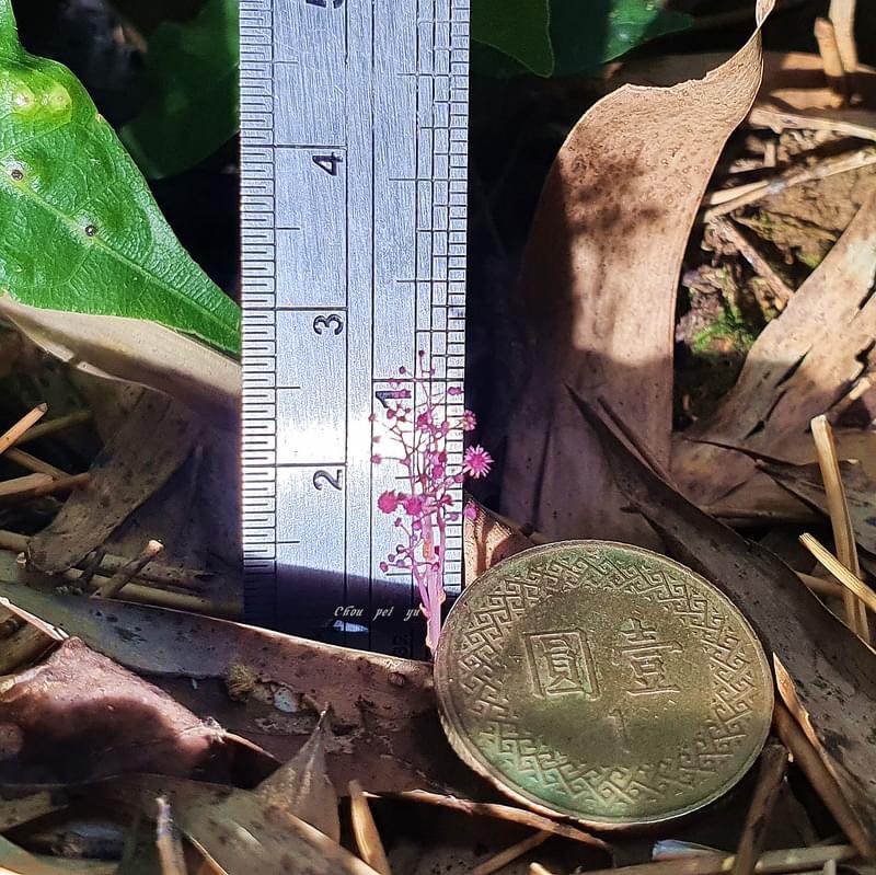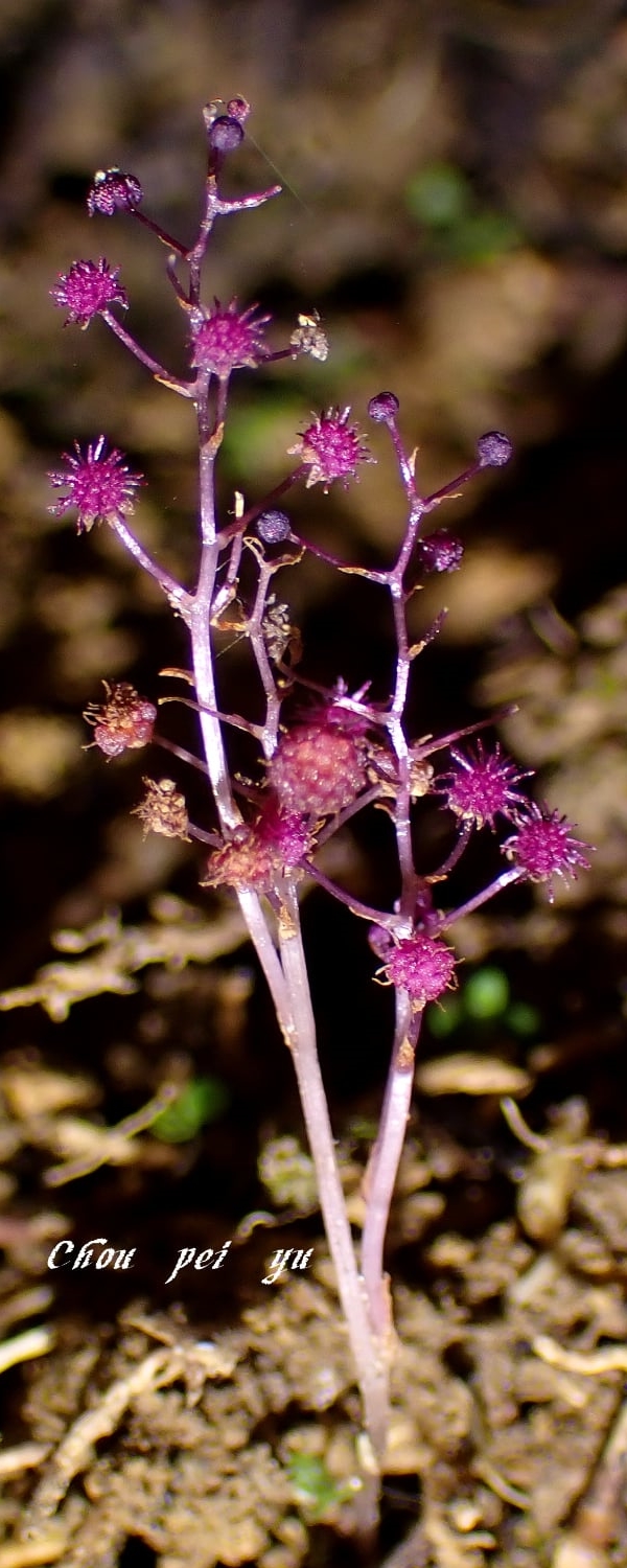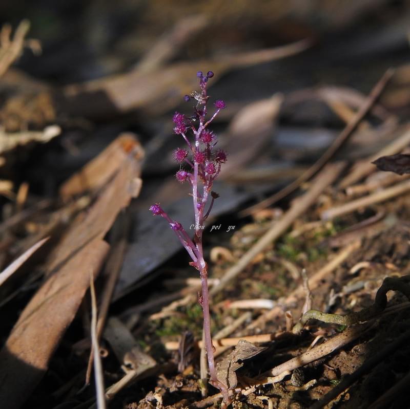 (台灣特有種;腐生植物;多年生草本;植株甚小,高約2~8公分,呈紫紅色;具地下莖;地上莖常呈分枝狀;總狀花序;花單性,雌雄同株或異株)