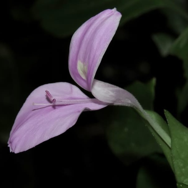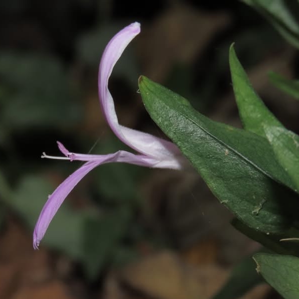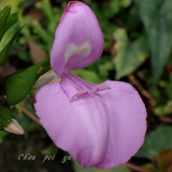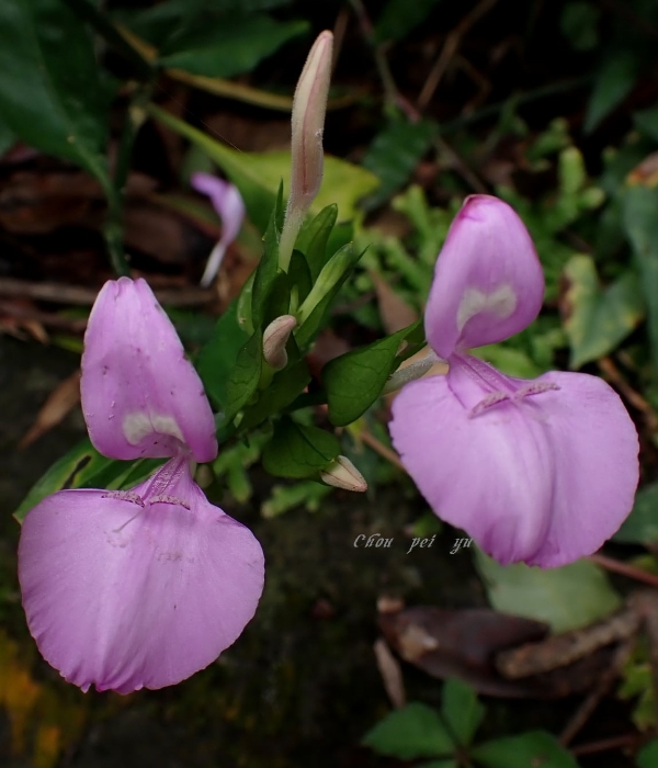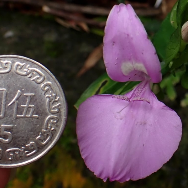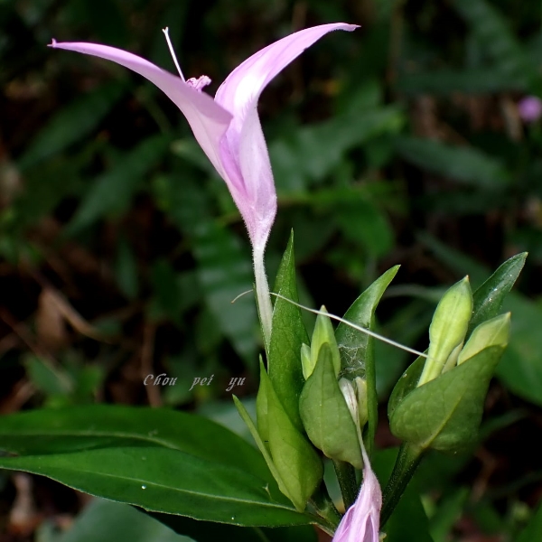 ![]() 上面照片:周佩玉拍攝 (花冠粉紅色,2唇形,花筒細長;雄蕊2枚,柱頭末端分叉) |