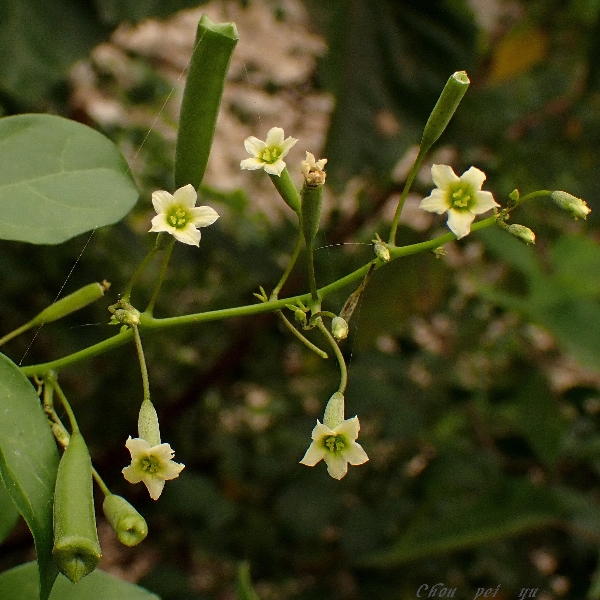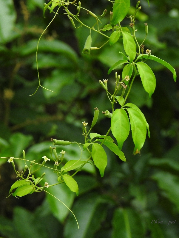 (原生種;攀緣性草本;雌雄異株;掌狀複葉,互生,全緣;卷鬚與葉對生;花朵單性,白色;雄株花序圓錐狀,花多而密集;雌株花序總狀;瓠果圓柱狀,先端平截,成熟後先端三瓣裂;種子五角形,具翅)