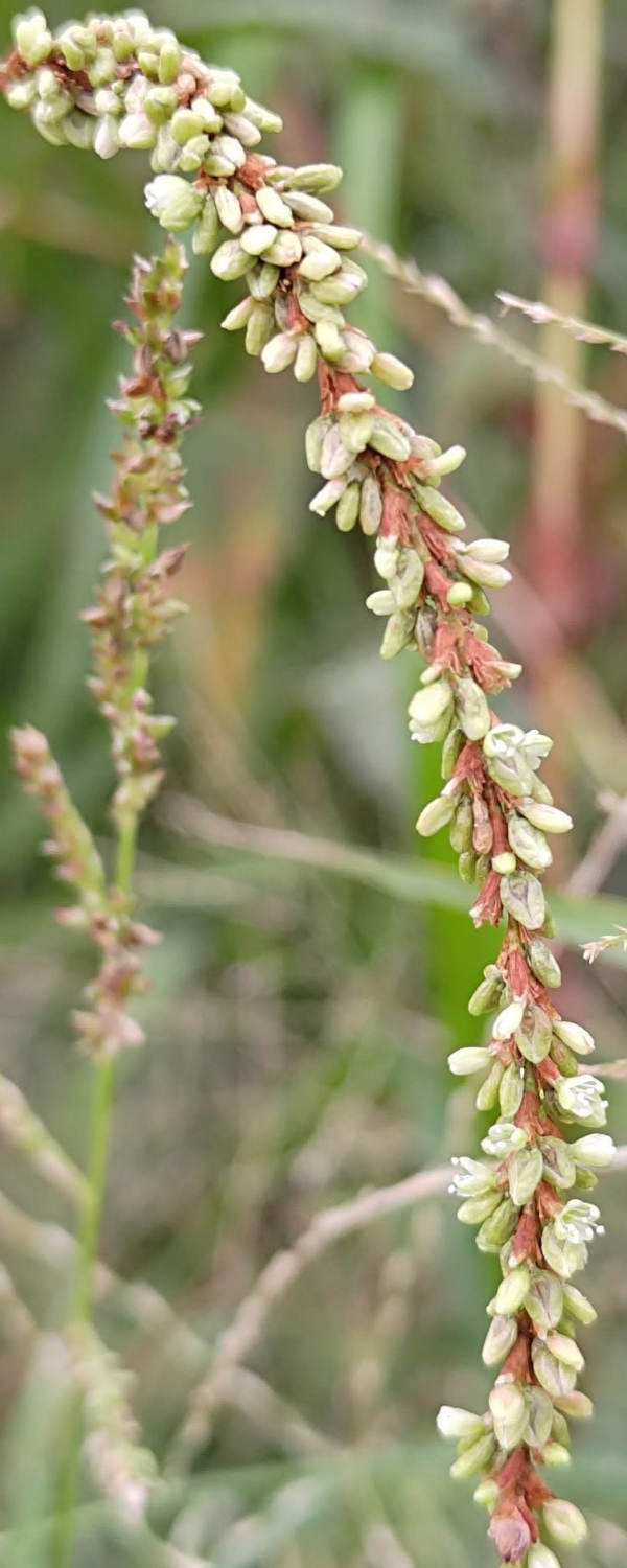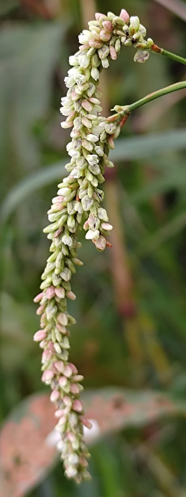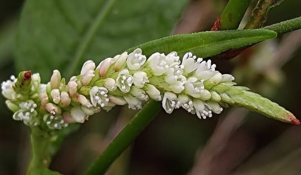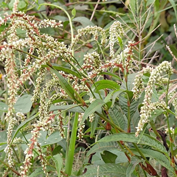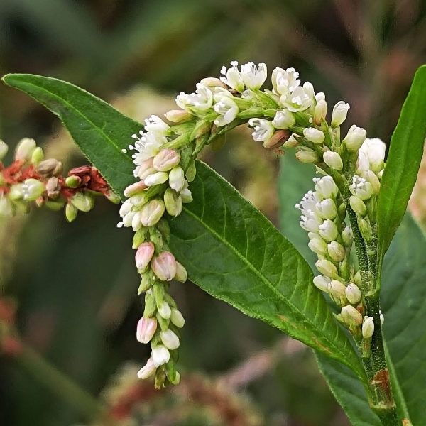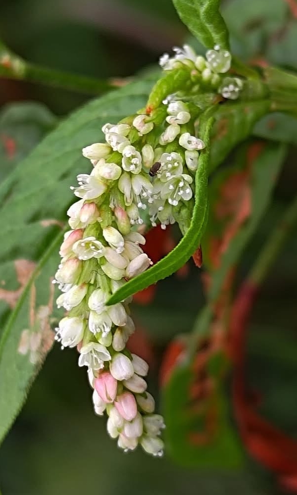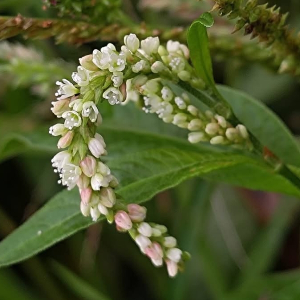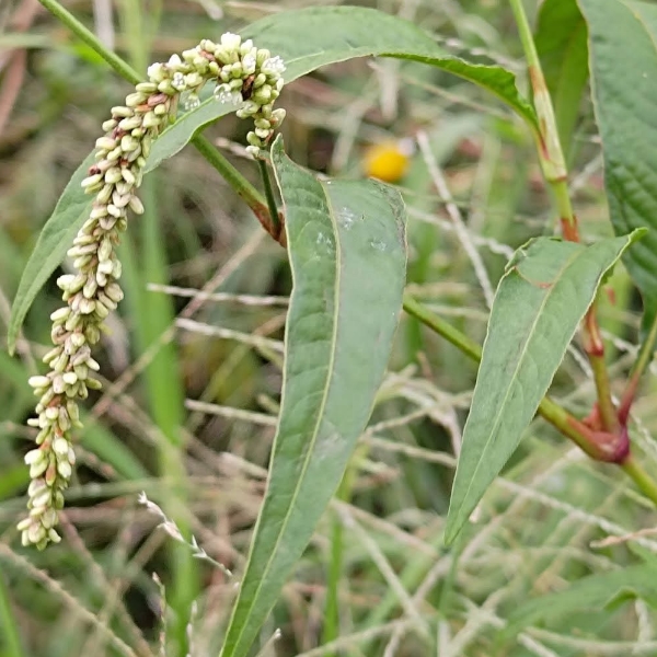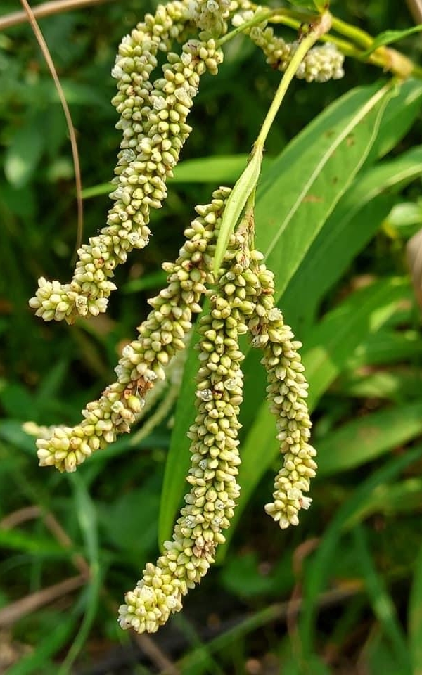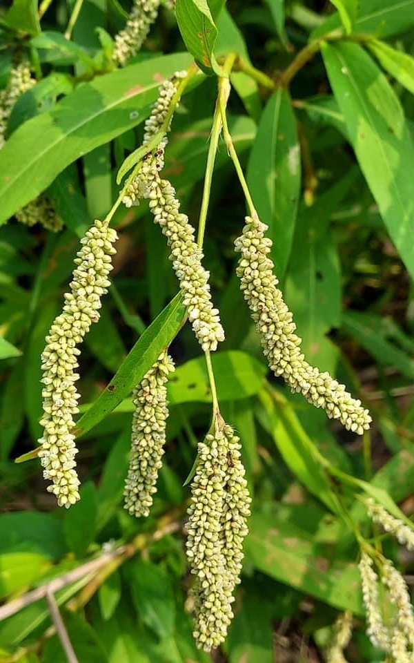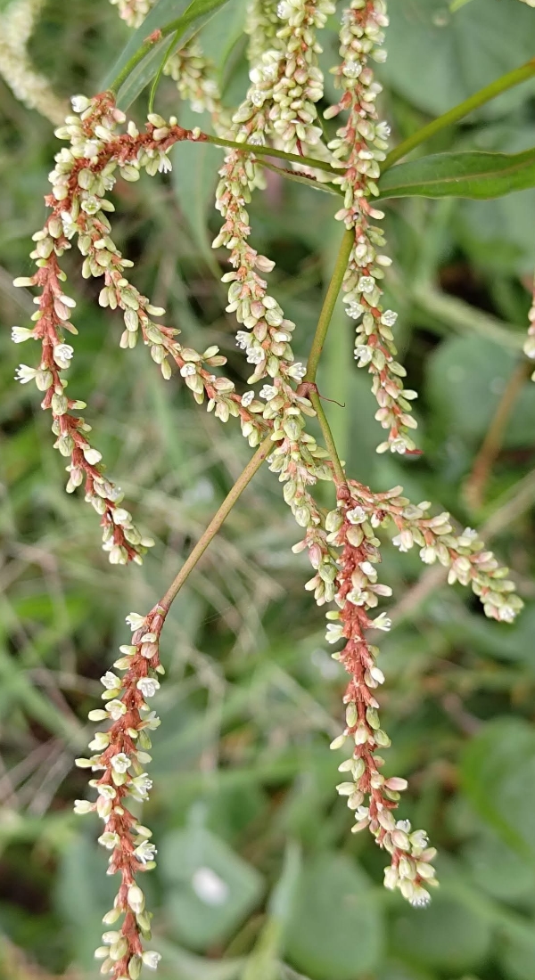 (原生種;原生於世界各洲,熱帶至寒帶皆有分布;台灣物種名錄標名早苗蓼,附有照片;直立草本,高度可達160公分(或更高);莖光滑,常具紅斑;莖節和葉柄常呈紅色;莖節膨大;單葉互生,披針形;葉鞘管狀;穗狀花序,腋生或頂生,頂生花序常分枝,彎曲下垂;花被綠白色至粉紅)