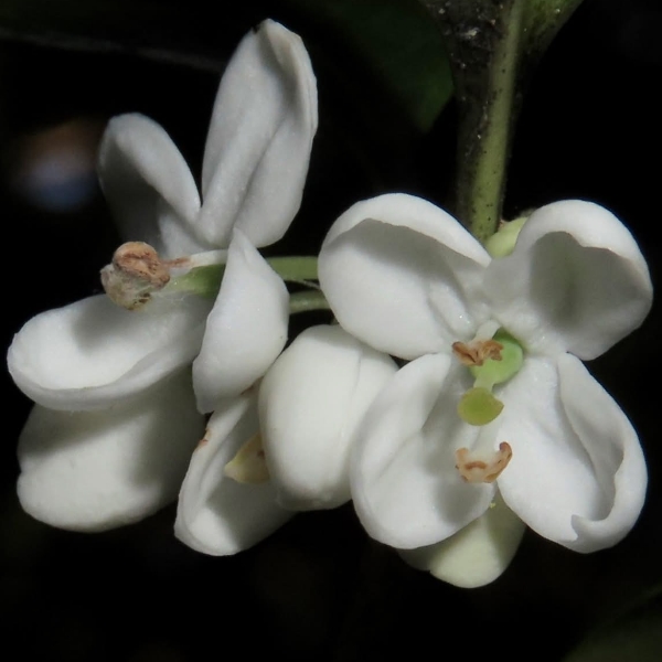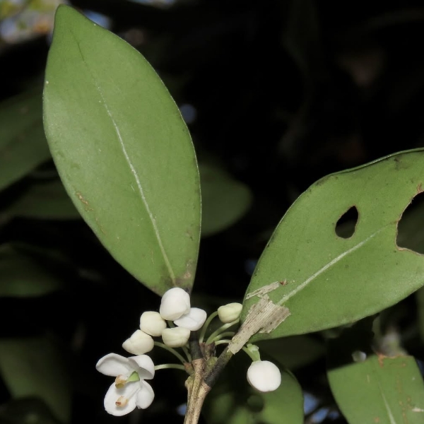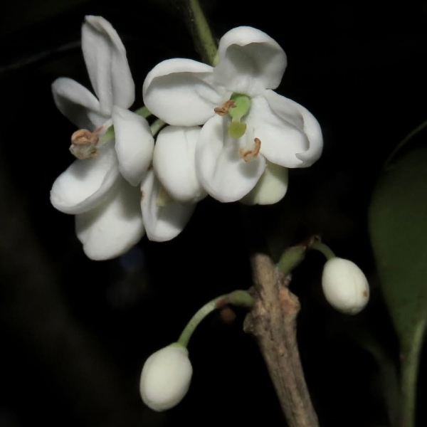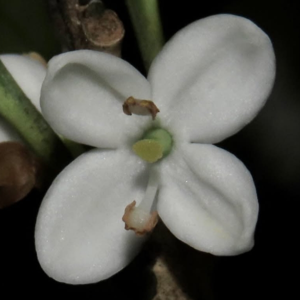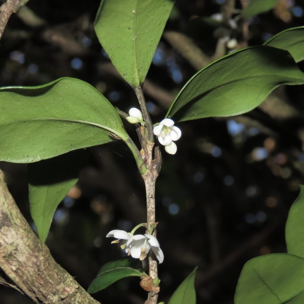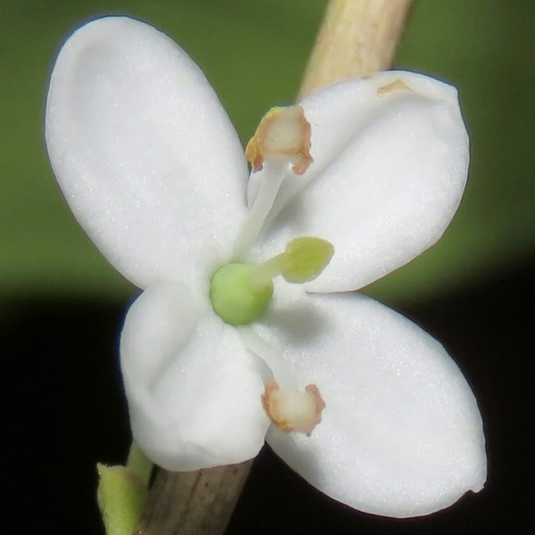 ![]() 上面照片:周佩玉拍攝 (花序簇生(或單生)於葉腋),具長梗;花瓣4枚,白色,厚質;雄蕊2枚,雌蕊柱頭單一) |
