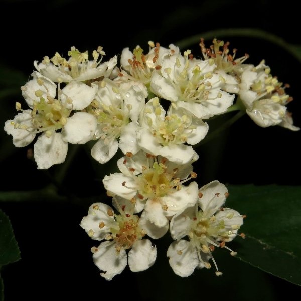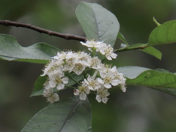 (台灣特有種;落葉小喬木;單葉互生,長橢圓形至倒卵狀披針形,細鋸齒緣(近全緣),先端尾尖;繖房花序,頂生;花瓣5枚,近圓形,白色;雄蕊多數,約20枚;柱頭2~3歧;果實卵形,長約0.5公分,成熟紅色)