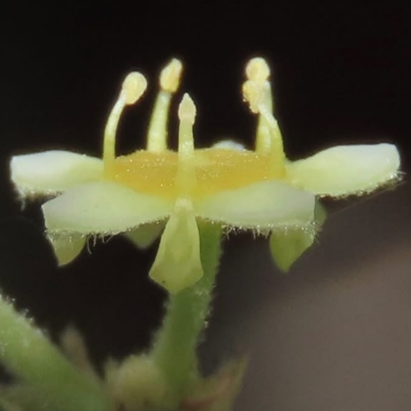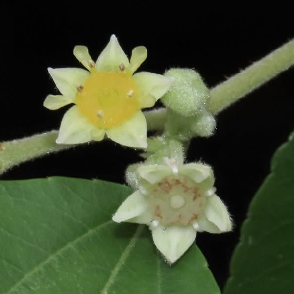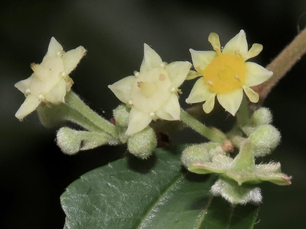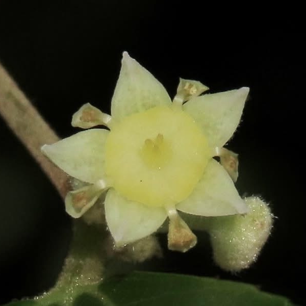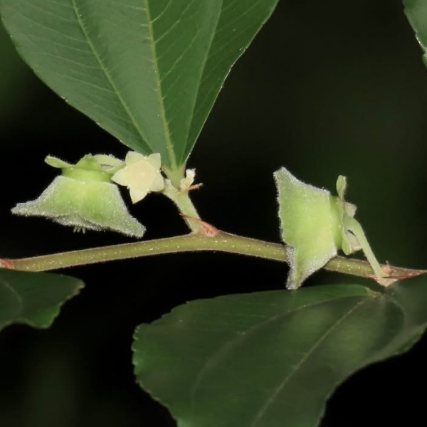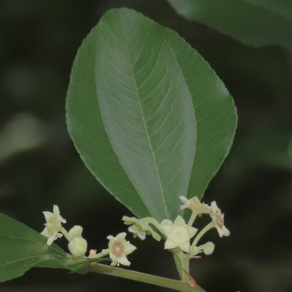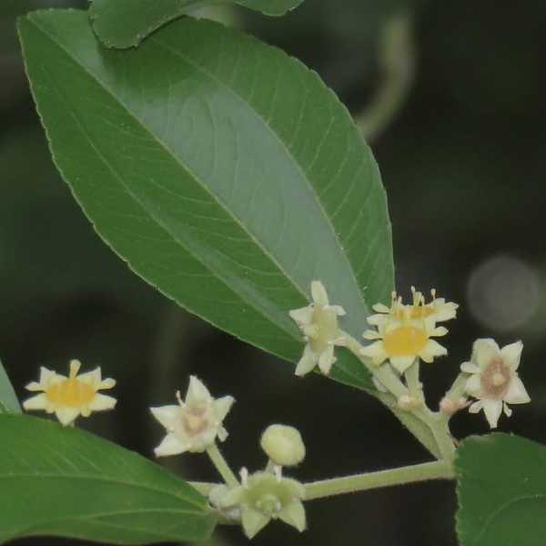 (原生種;灌木至小喬木;單葉互生,卵形,三出脈,小枝葉腋具銳刺;聚繖花序,腋生,花型細小,黃綠色;花瓣5枚,匙形;萼片5裂,三角形;柱頭3裂;核果盤形,淺三裂)