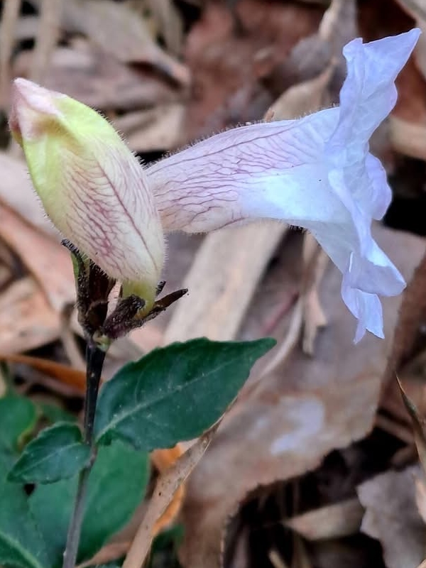(原生種;原生於台灣、越南、中國大陸至巴基斯坦一帶;台灣物種名錄標名腺萼馬藍,學名 Strobilanthes penstemonoides,附有照片;IPNI國際註記 Strobilanthes pentastemonoides,與台灣物種名錄標示的學名字母有異;維基百科標名圓苞金足草,學名與台灣物種名錄 Strobilanthes penstemonoides 相同;香港柴娃娃植物網,標名球花馬藍,別名腺毛馬藍;灌木;單葉對生,長橢圓形,鋸齒緣;聚繖花序,著生於腋生的開花短枝,有花3~5朵;花瓣5枚,粉紫色至紫藍色;花萼5枚,披針形,密被腺毛,常呈紅褐色)
