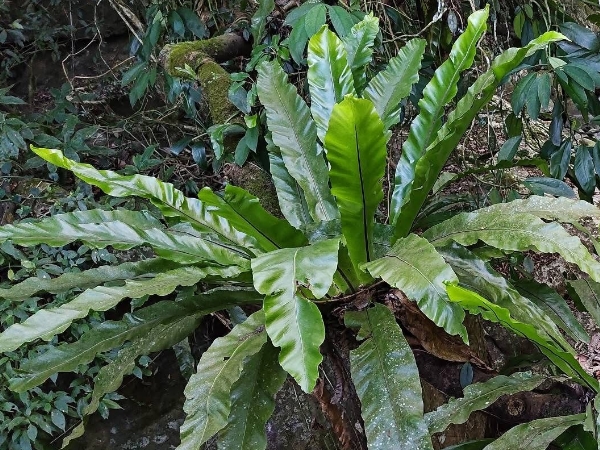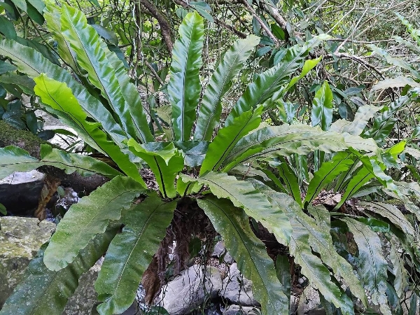 (原生種;世界植物在線 POWO 附有照片,標示原生於菲律賓和印尼(不含台灣) (其實台灣也是原生地);台灣物種名錄標名台灣山蘇花,別名巢蕨,附有照片;維基百科標名鳥巢蕨,別名巢蕨、台灣山蘇、山蘇花、台灣山蘇花;分布於台灣的低海拔地區;葉長可達1公尺以上,葉緣波浪狀,葉軸前段暗紅色;孢膜線形,長度通常不超過中軸至葉緣的一半或1/3)