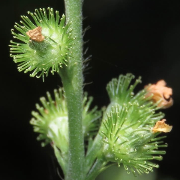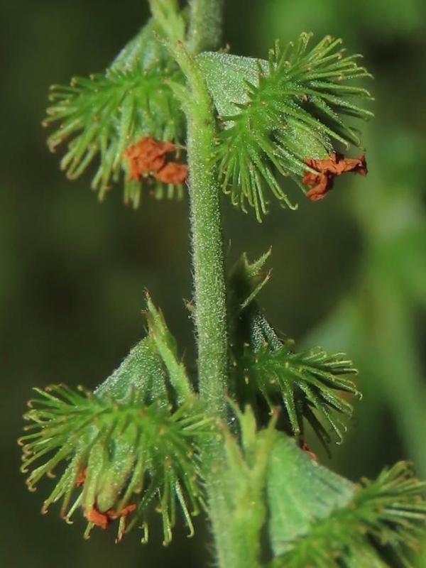 (原生種;草本;全株密被毛;奇數羽狀複葉,互生;小葉通常5~7枚;莖上部的托葉成刺爪狀;圓錐花序,頂生;花瓣5枚,黃色;瘦果,倒圓錐狀,錐盤上邊緣有一圈宿存花萼的鉤狀刺毛)