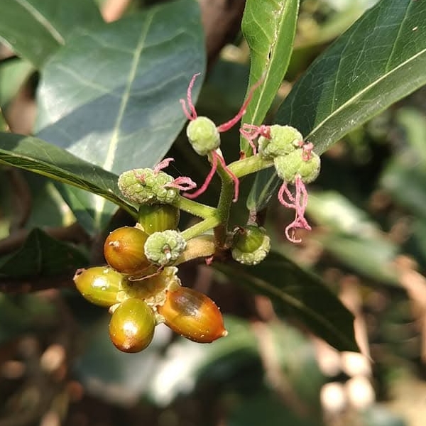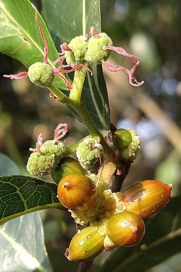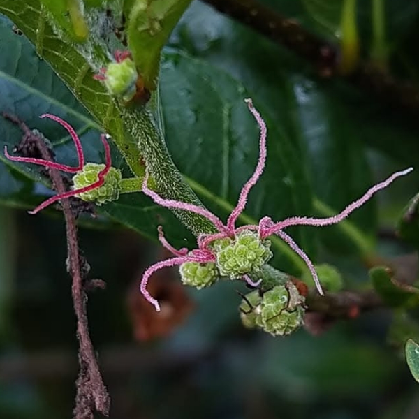 (原生種;原生於台灣、中國大陸至澳洲一帶;木質藤本;莖具蔓性;單葉互生,長橢圓形,全緣;雌雄異株;雄花序穗狀;雌花序頭狀;雌蕊2叉,細長,紅色;瘦果