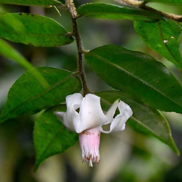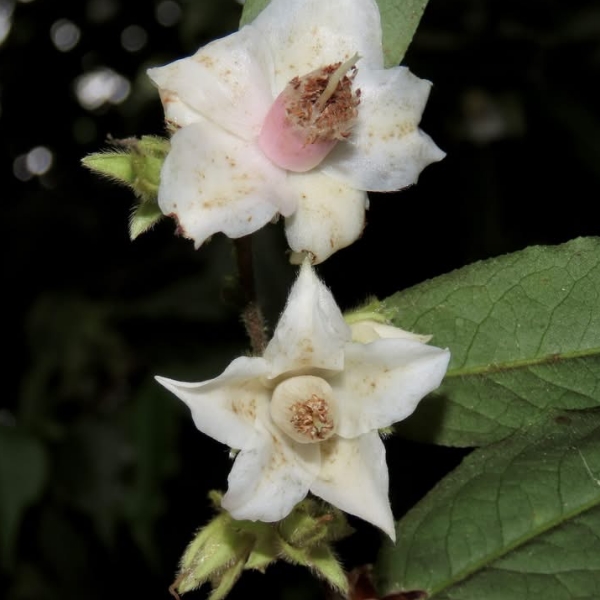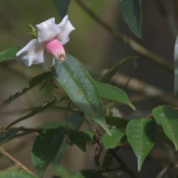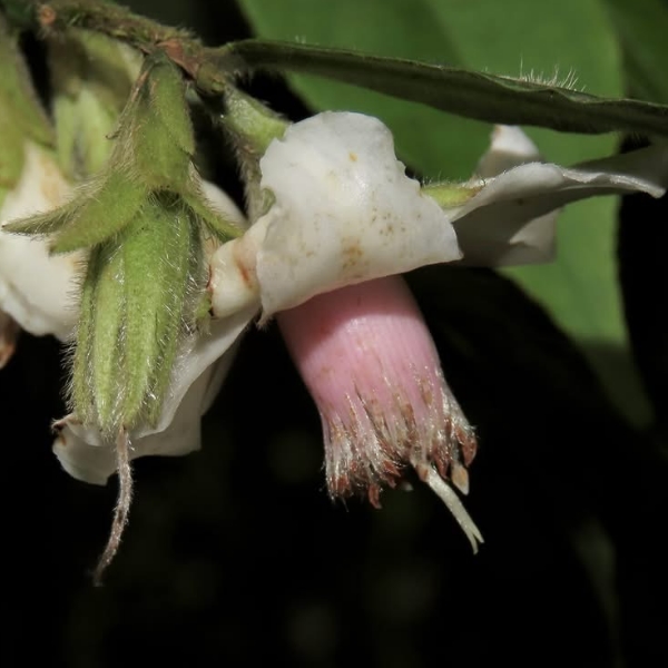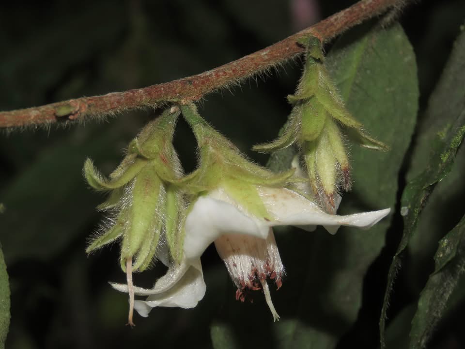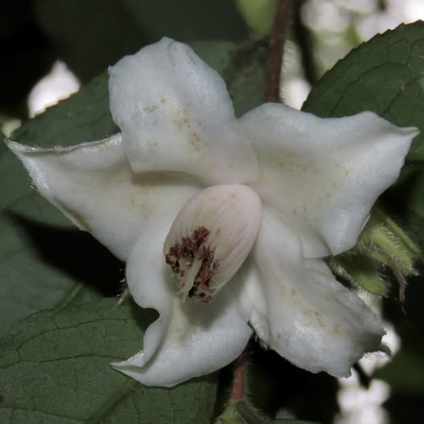 (原生種;原生於台灣和中國大陸;灌木至小喬木;全株密被絨毛;單葉互生,長橢圓狀披針形,細鋸齒緣,密被絨毛;花序腋生,多見單生;花瓣5枚,白色;雌蕊柱頭3叉,雄蕊基部合生;花萼多層,密被長絨毛;蒴果球形)