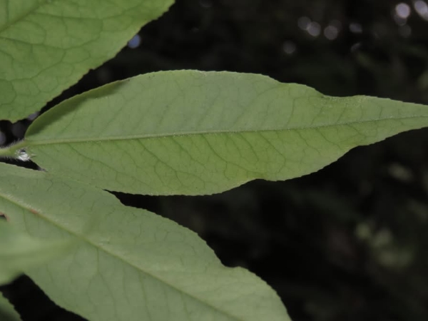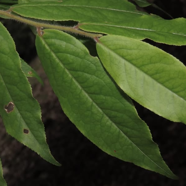 ![]() 上面照片:小花老師拍攝 (全株密被絨毛;單葉互生,長橢圓狀披針形,細鋸齒緣,密被絨毛) |