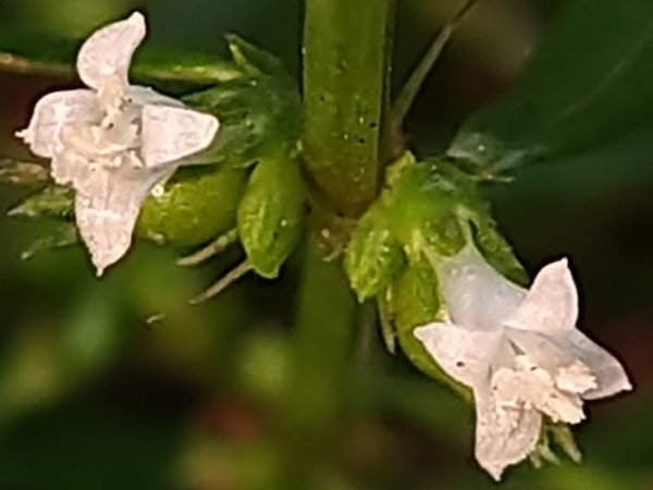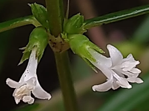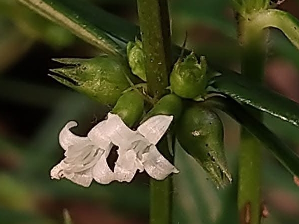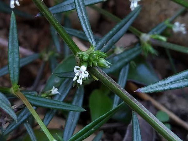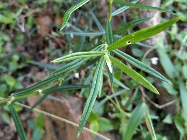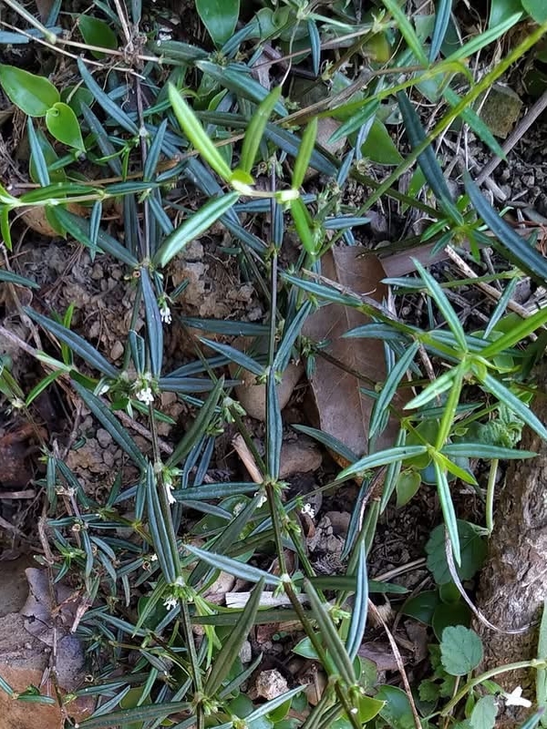 (原生種;世界植物在線 POWO 標示 Hedyotis tenelliflora var. papuana = Scleromitrion angustifolium,皆為有效學名,附有照片;台灣物種名錄將 Scleromitrion angustifolium 標名細葉龍吐珠,將 Hedyotis tenelliflora 標名纖花耳草;維基百科標名纖花耳草,學名為 Hedyotis tenelliflora,耳草屬)