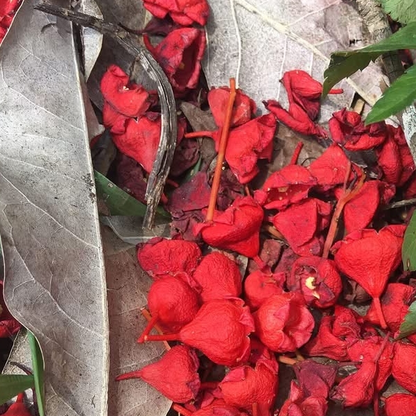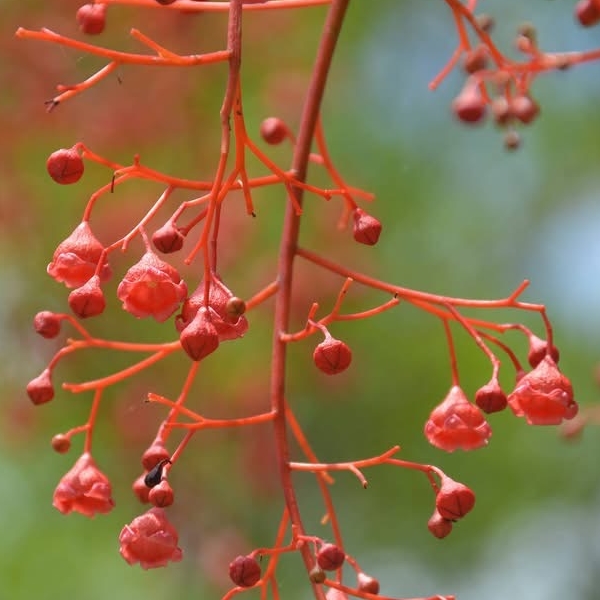 (栽培種;常綠大喬木,樹高可達30公尺以上;單葉互生,葉形變化大,有披針形,3裂,5裂,甚至7裂,具長柄;總狀花序或圓錐花序,腋生;花小,鈴鐺狀,紅色;蓇葖果,長約10公分,尾尖喙狀,具長梗,光滑,成熟黑褐色,木質;種子排成二列,大小和形狀像玉米粒)