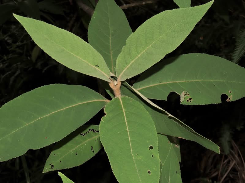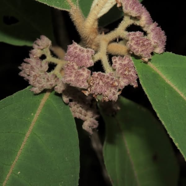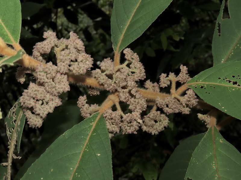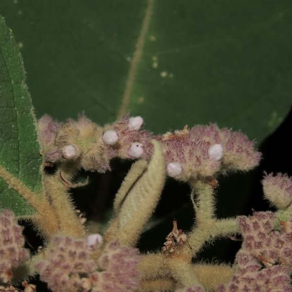 (原生種;台灣物種名錄標名鬼紫珠;維基百科標名枇杷葉紫珠;常綠灌木或小喬木;枝葉密生黃褐色毛;單葉對生,長橢圓形;聚繖花序,腋生;花朵緊密;漿果球形,白色;植物名加鬼字,通常意指多毛或多刺)