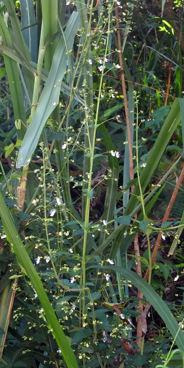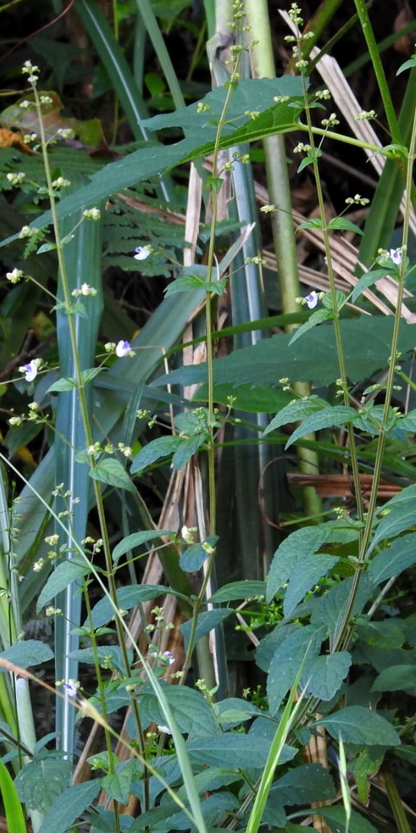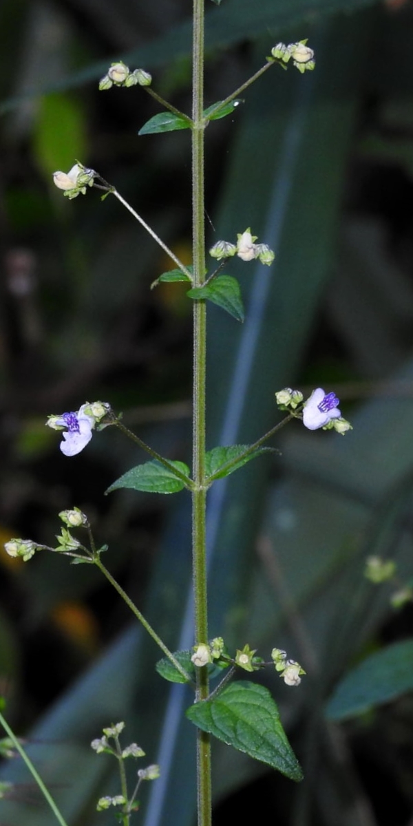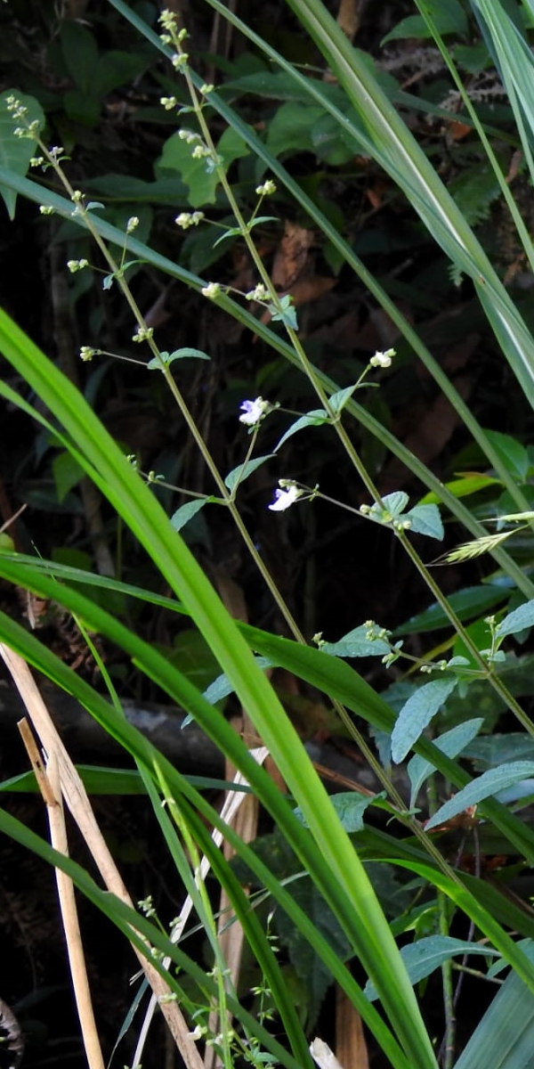 (原生種;多年生直立草本;單葉對生,卵形,圓鋸齒緣;聚繖花序,腋生或頂生,總花梗細長