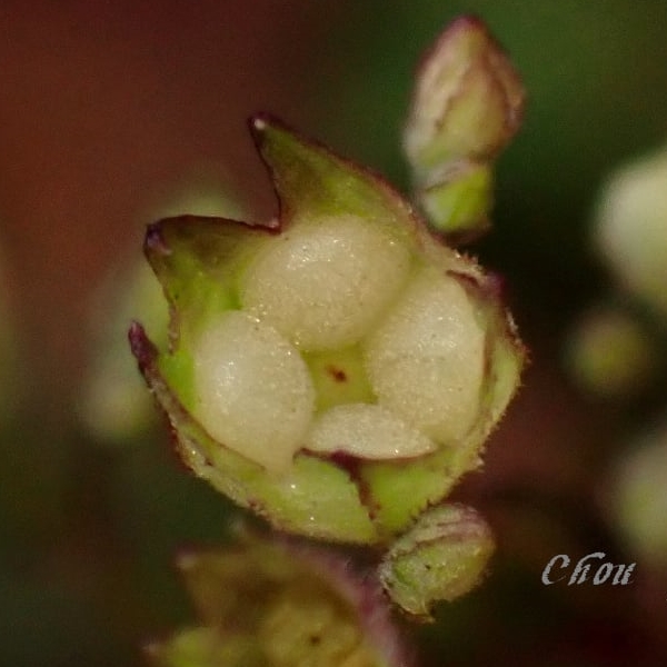 ![]() 上面照片:周佩玉拍攝 (單葉對生,卵形,圓鋸齒緣;聚繖花序,腋生或頂生,總花梗細長,斜上) |