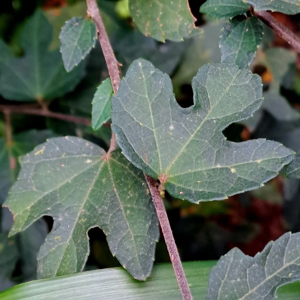 ![]() 上面照片:江亮亮拍攝 (單葉互生,卵形至掌形(3裂或5裂)) |