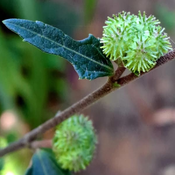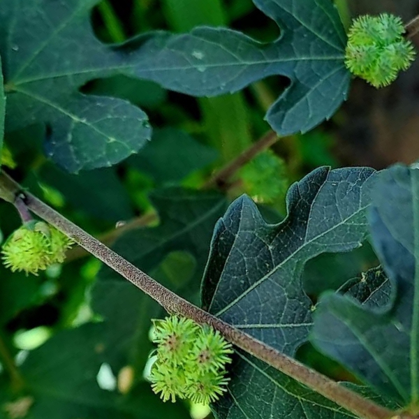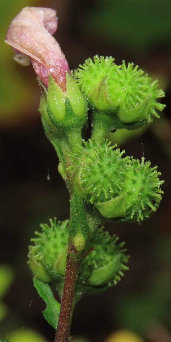 ![]() 上面照片:江亮亮拍攝 (瘦果5瓣狀,密被棘刺,棘刺末端有星狀的小倒鉤刺,可借動物沾粘傳播種子) |