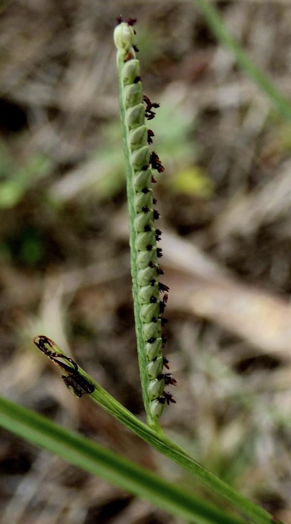 (原生種;原生於台灣、中國大陸至非洲和澳洲一帶;世界植物在線 POWO 附有照片;台灣物種名錄將 Paspalum scrobiculatum 標名鴨姆草,將 Paspalum scrobiculatum var. bispicatum 標名台灣雀稗;國際處理,將台灣雀稗併入鴨乸草(乸讀哪);維基百科標名鴨乸草,別名鴨姆草(鴨乸,意為母鴨);一年生草本;可作為糧食作物;小穗2~6枚;果實卵圓形,略扁,中間有綠色條紋)