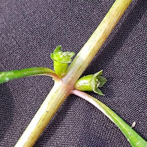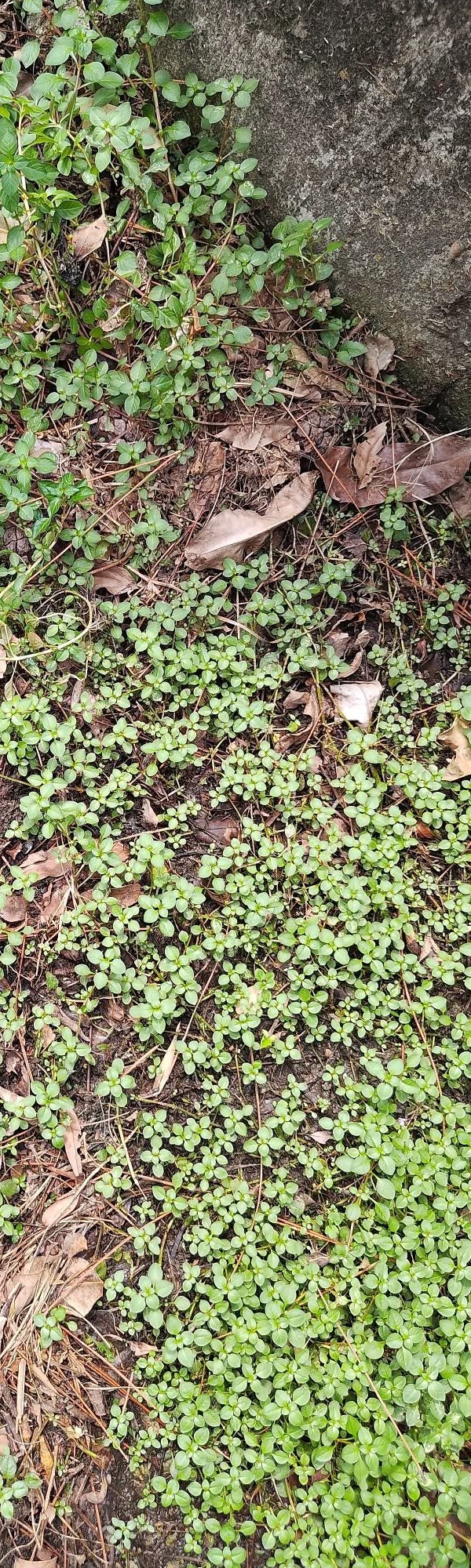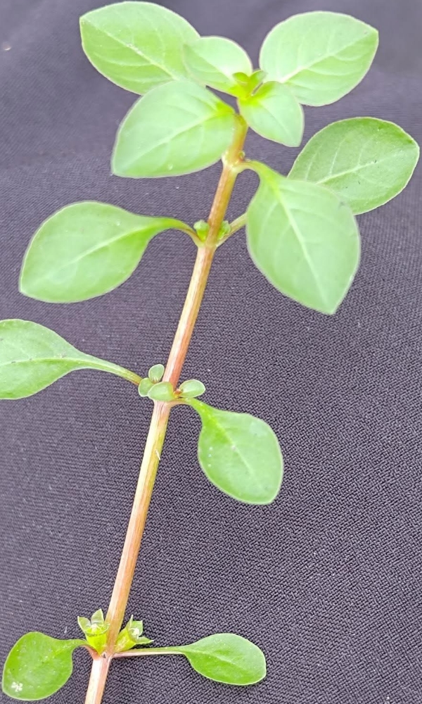 (歸化種;原生於美洲、歐洲和非洲;草本;莖匍匐生長,常呈紫紅色;單葉對生,卵形至橢圓形,全緣,基部下延成柄;花朵單生葉腋,無梗;花朵甚小,花被片4枚,花萼4枚;蒴果杯型,花萼宿存)