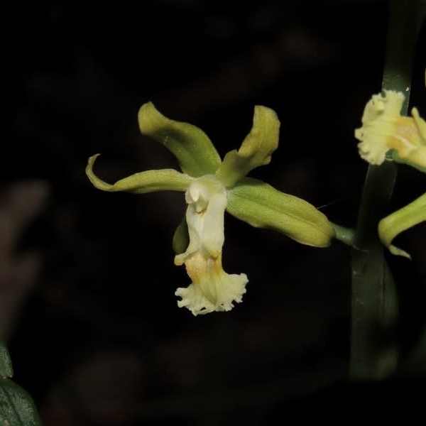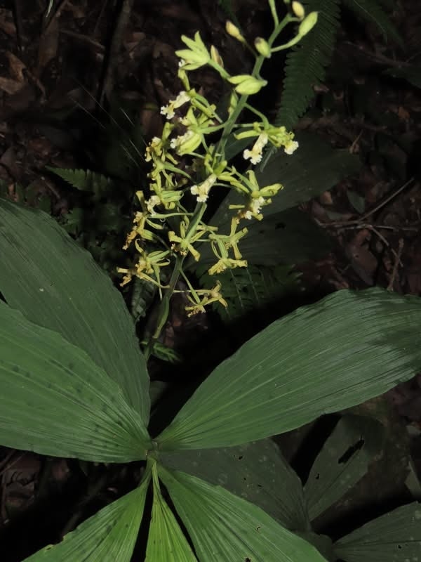 (原生種;原生於台灣、日本至孟加拉一帶;世界植物在線 POWO 標示 Cephalantheropsis obcordata = Calanthe obcordata;台灣物種名錄標名綠花肖頭蕊蘭,標示學名 Cephalantheropsis obcordata var. obcordata)