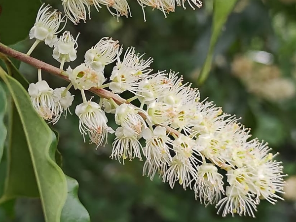 ![]() 上面照片:林美燕拍攝 (總狀花序,腋生或頂生;花瓣5枚,卵圓形,白色;雄蕊多數,雌蕊柱頭單一;花盤具橘色腺體) |