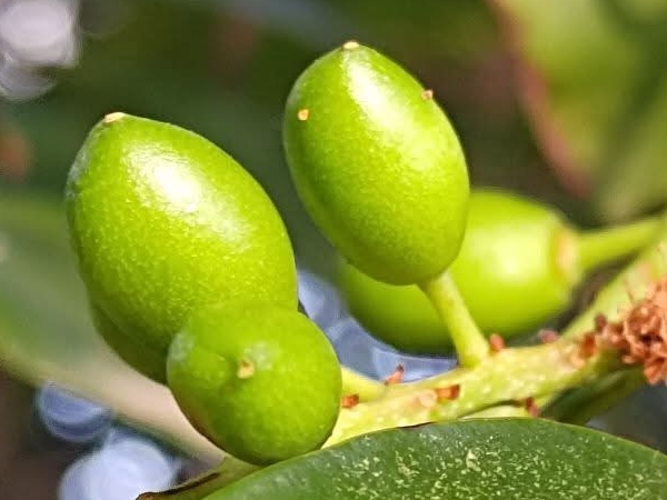 ![]() 上面照片:林美燕拍攝 (發現連體果實;果實橢圓形,成熟紫黑色) |