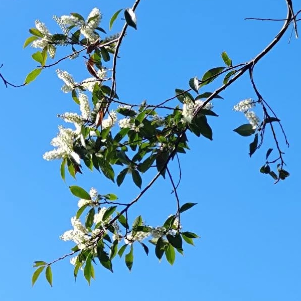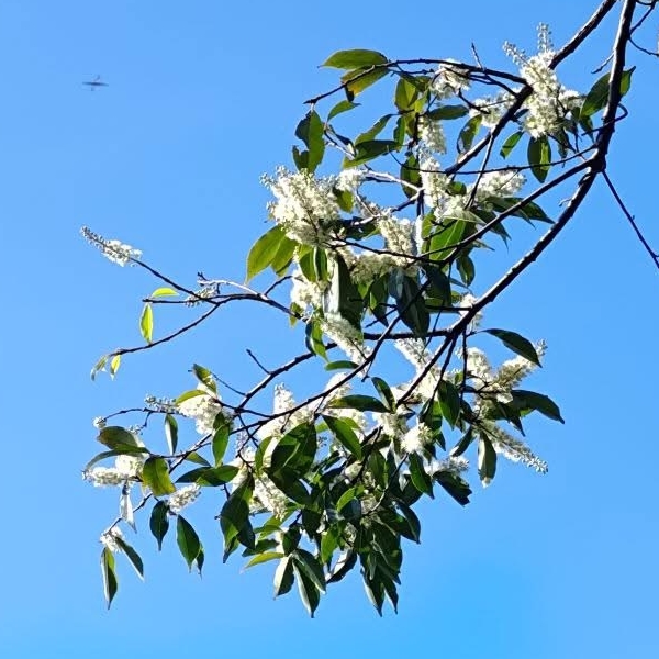 (原生種;小喬木;世界植物在線 POWO 標示原生於日本和中國大陸(不包含台灣,其實台灣也是原生地);樹幹與櫻花類似具明顯皮孔;花期在秋天(而非春天),故名桂櫻;單葉互生,長橢圓形至倒卵狀披針形,刺鋸齒緣至全緣;總狀花序,腋生或頂生;花瓣5枚,卵圓形,白色;雄蕊多數,雌蕊柱頭單一;花盤具橘色腺體;果實橢圓形,成熟紫黑色)