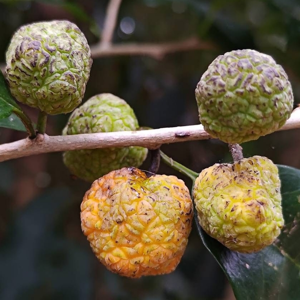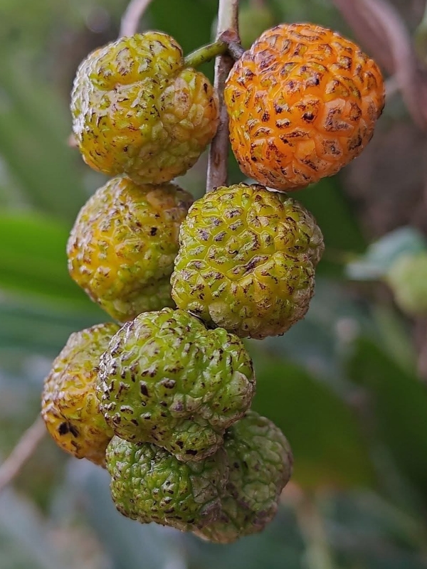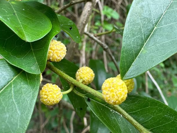 ![]() 上面照片:林美燕拍攝 (聚合果球形,成熟橙黃色,果徑約2公分) |