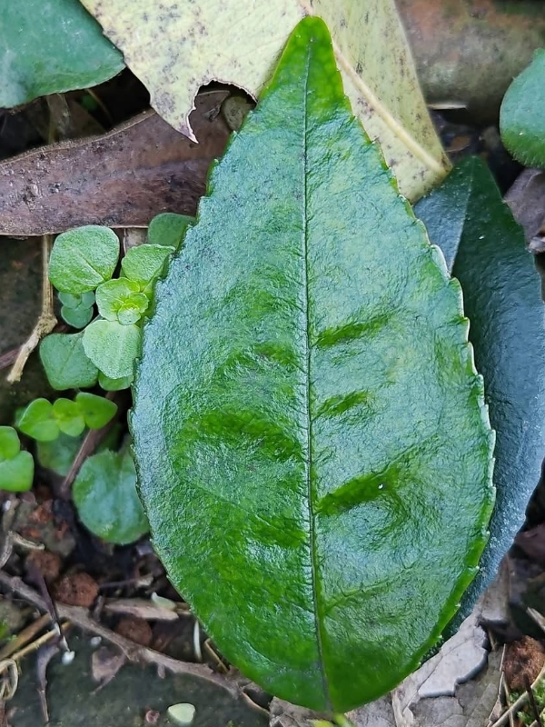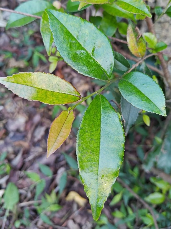 ![]() 上面照片:林美燕拍攝 (單葉互生,橢圓形至長卵形,細鋸齒緣) |