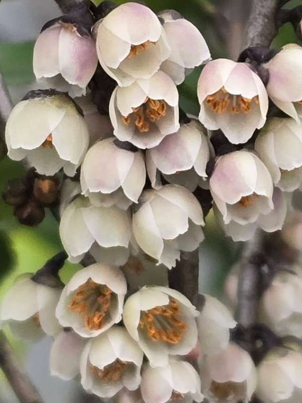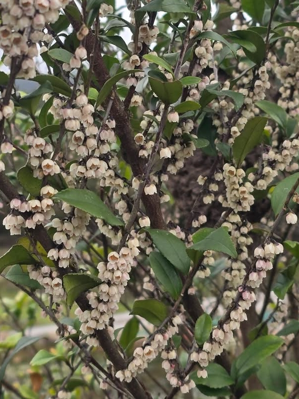 (原生種;原生於台灣、中國大陸至印尼一帶;台灣物種名錄標名米碎柃木,別名中國柃木;維基百科標名米碎花;灌木至小喬木;小枝具斜稜,被細毛;單葉互生,橢圓形至長卵形,細鋸齒緣,葉芽密被長柔毛;花單性,雌雄異株;花單生或2~3朵簇生於葉腋,花梗約與花苞等長或略短;花瓣5枚,白色,有濃郁香味;雄花雄蕊約15枚,無雌蕊;雌花雌蕊3叉,無雄蕊;漿果球形,成熟紫黑色,表面光滑)