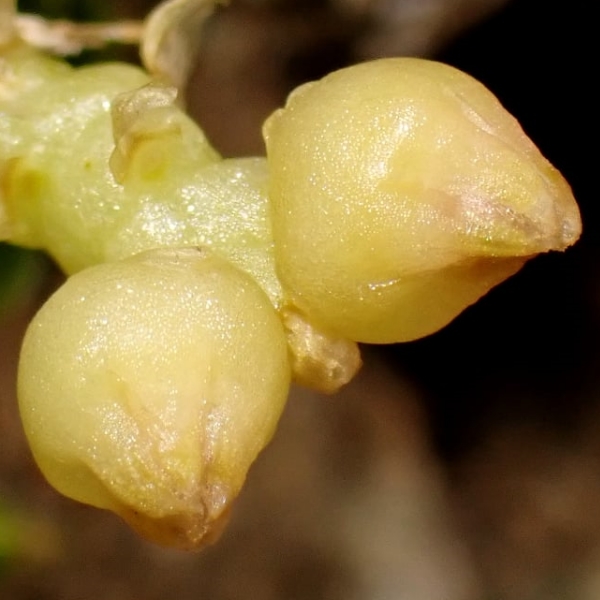 ![]() 上面照片:周佩玉拍攝 (發現變異的花色;胞果卵形,內質花被包覆) |