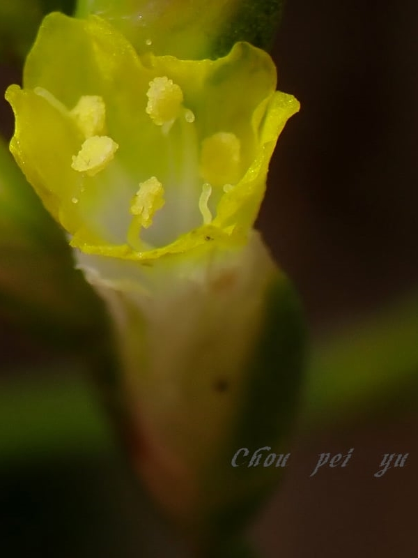 ![]() 上面照片:周佩玉拍攝 (花瓣5枚,黃色;雄蕊5枚) |