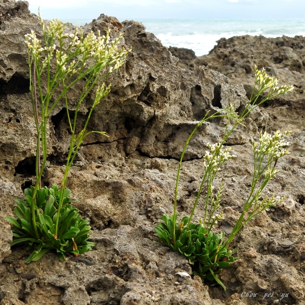 ![]() 上面照片:周佩玉拍攝 (多年生草本;單葉叢生,倒披針形;圓錐花序,頂生,花莖直立抽高狀;花瓣5枚,黃色;花萼白色,宿存) |