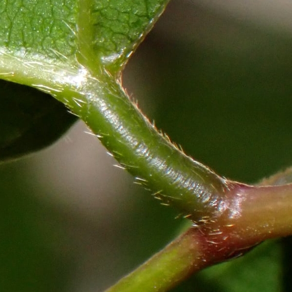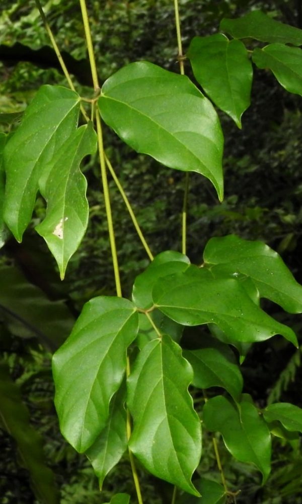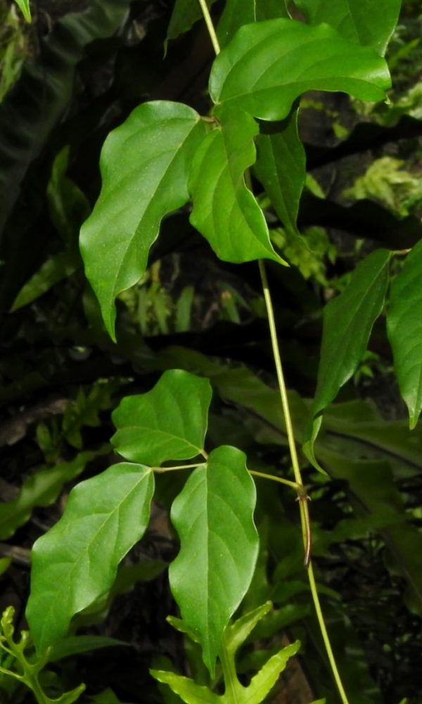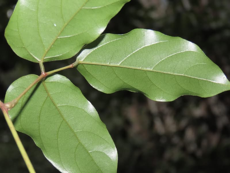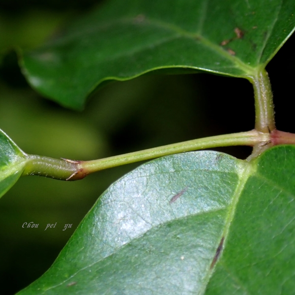 ![]() 上面照片:周佩玉拍攝於台大校園 (三出複葉,互生;小葉歪卵形,兩面無毛或具很稀疏的毛;葉柄和葉脈被疏毛) |