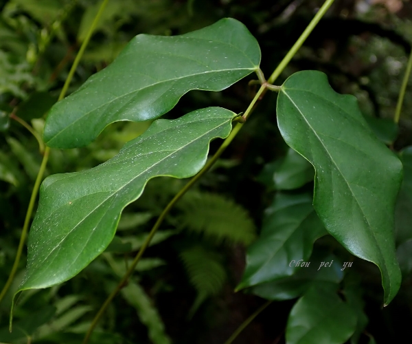 ![]() 上面照片:周佩玉拍攝於台大校園 (三出複葉,互生;小葉歪卵形,兩面無毛或具很稀疏的毛) |