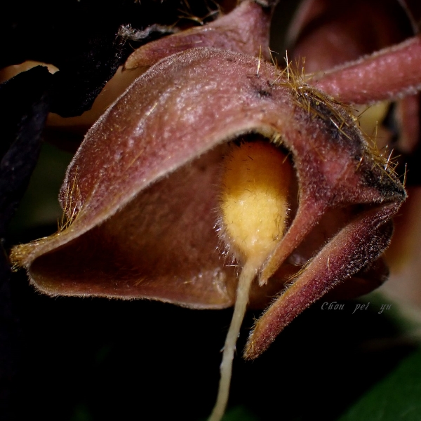 ![]() 上面照片:周佩玉拍攝於台大校園 (花萼密被伏貼褐色毛;子房密被細毛) |