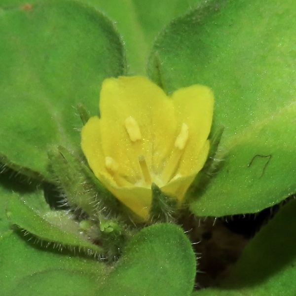 (原生種;原生於台灣、日本、中國大陸至新幾內亞島一帶,緬甸和巴基斯坦附近亦是原生地;名為小茄,並非茄科;多年生匍匐性草本;具走莖,常呈片狀生長;全株被細毛;單葉對生,卵形;花朵單生,腋生;花瓣5枚,黃色;雄蕊5枚,柱頭單一;花萼5枚,披針形;果實球形)