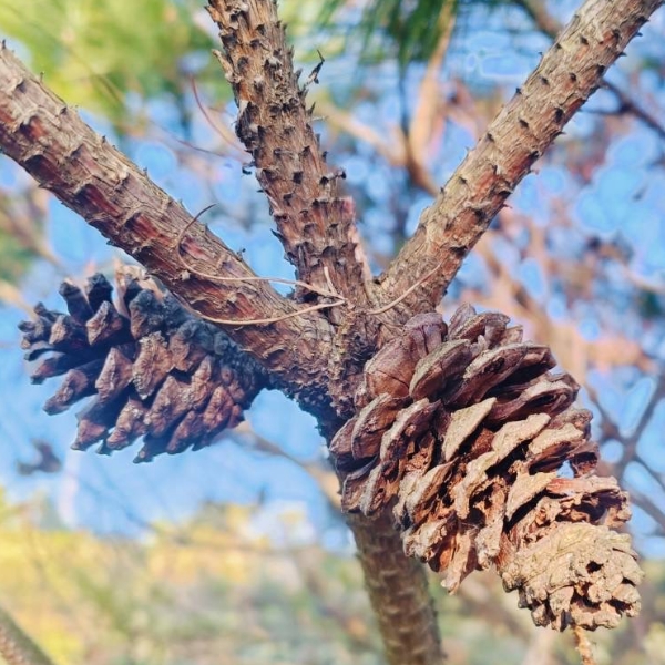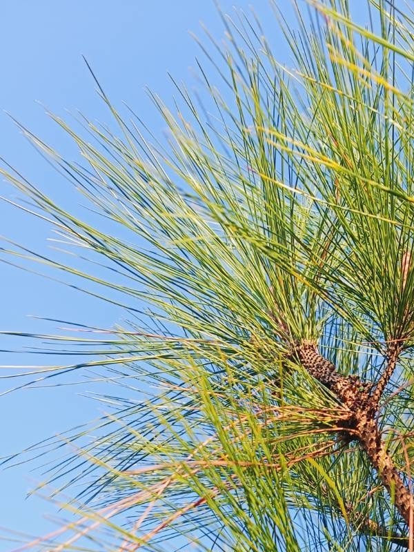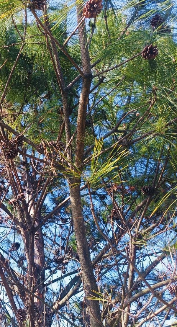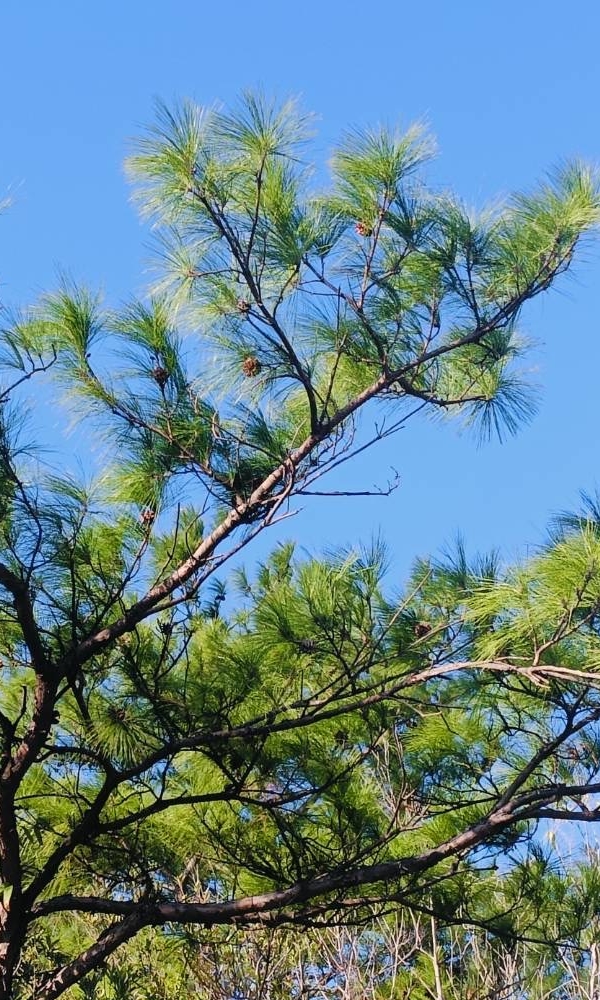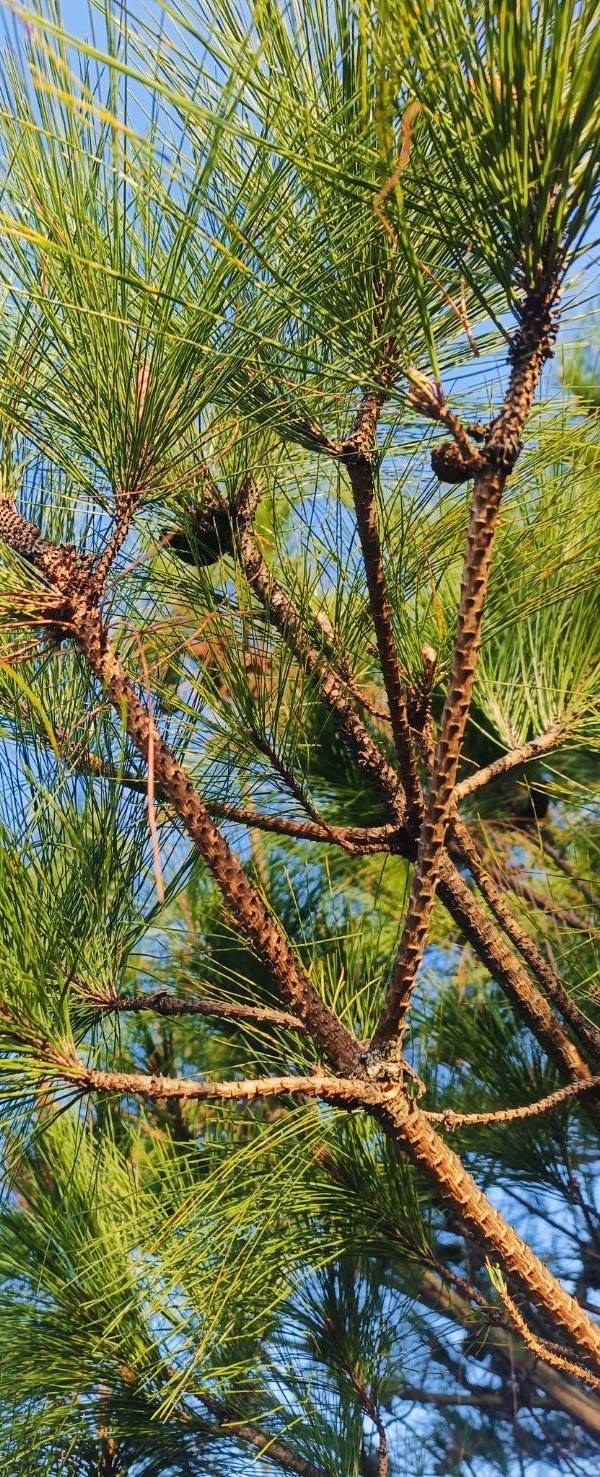 (原生種;世界植物在線標示學名 Pinus massoniana var. massoniana;原生於台灣和中國大陸;台灣物種名錄標名馬尾松,別名松柏、臺灣赤松、松蘿、台灣赤松,附有照片,標示學名;喬木;2針1束;葉長12~30公分)