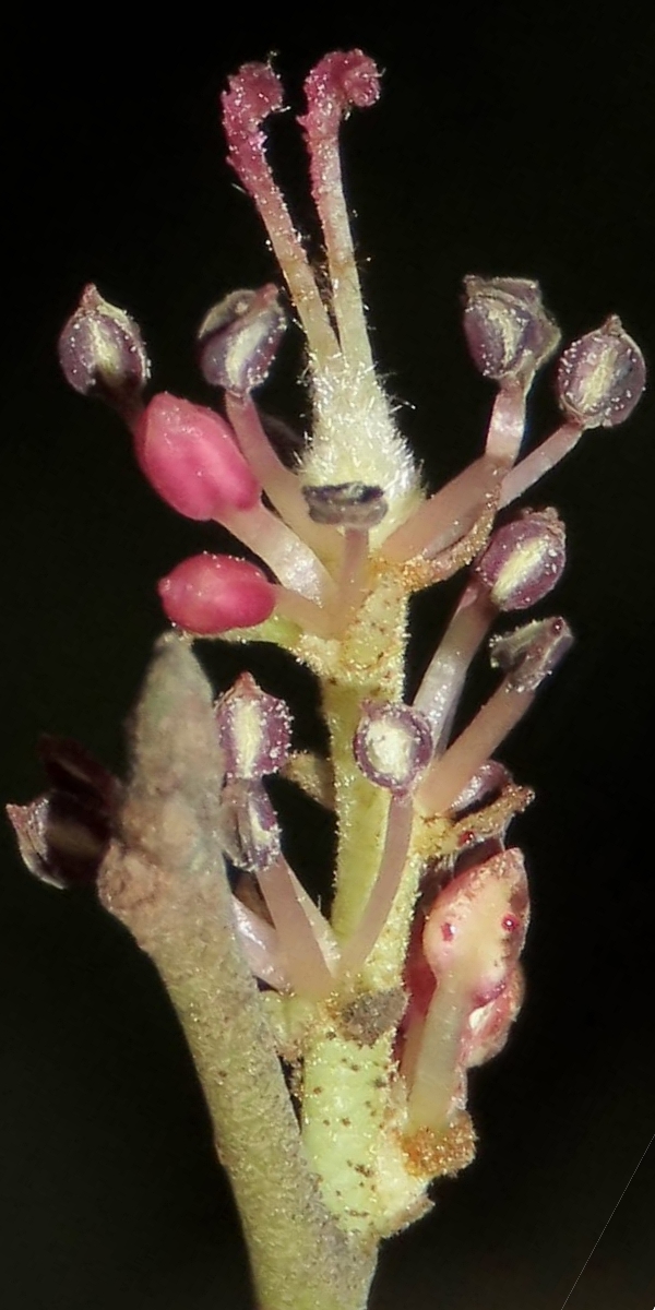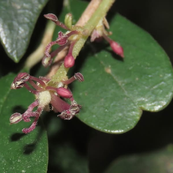 (原生種;世界植物在線 POWO 標示原生於台灣和中國大陸;台灣物種名錄標示為台灣特有種;小喬木;單葉互生,橢圓形至倒卵形,全緣(或疏齒緣),革質;總狀花序,腋生;花朵單性(同花序),無花瓣,具苞片;花柱2叉;雄蕊數枚(數量不一);蒴果卵形)
