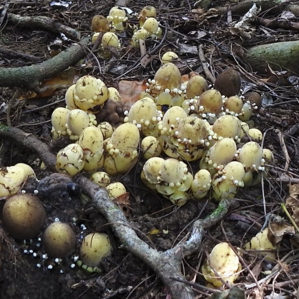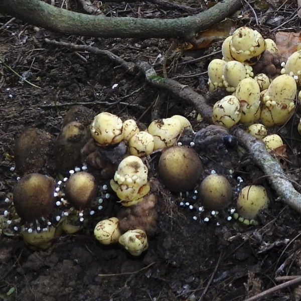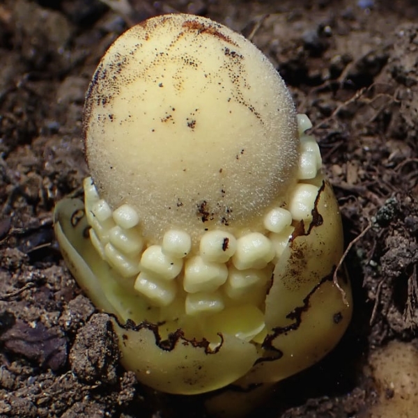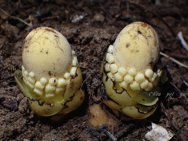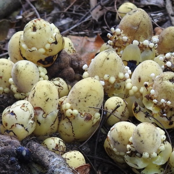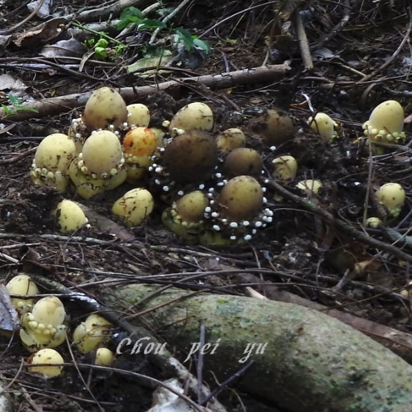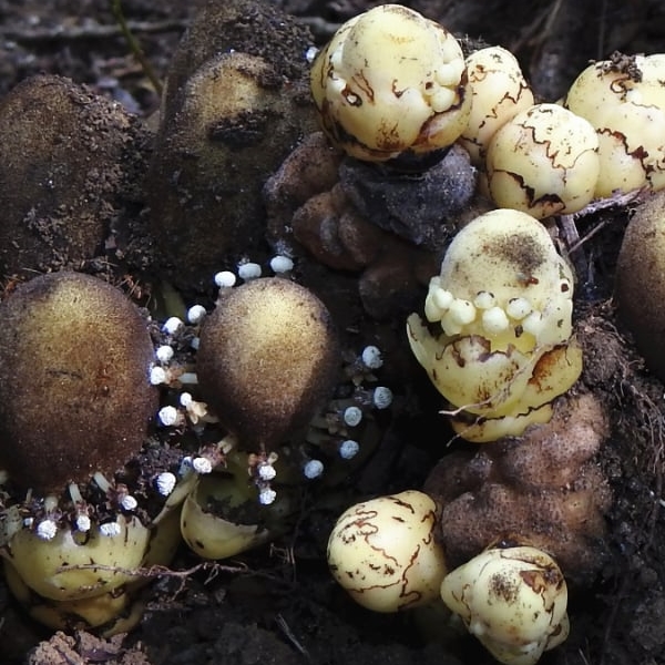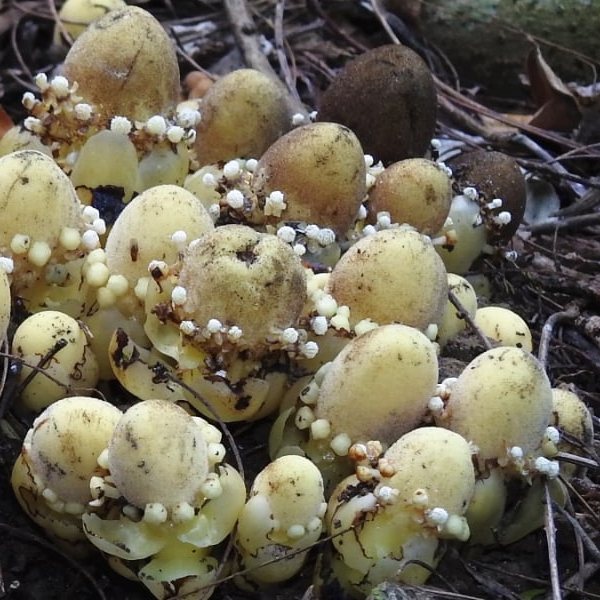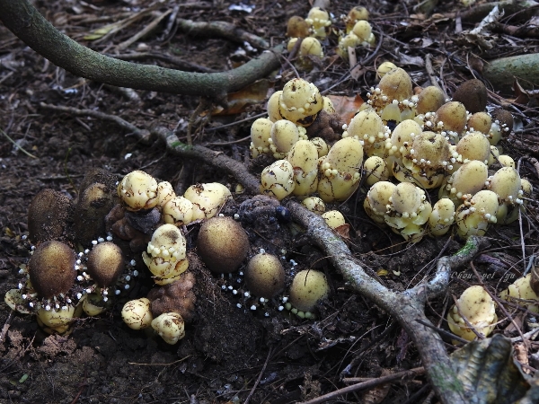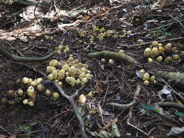 (原生種;原生於台灣、中國大陸至印度半島和澳洲東北部一帶;寄生性草本;多寄生於血桐根部;地下塊莖狀;全株肉質狀;莖直立,無葉綠素;雌雄同株或異株;單葉互生,鱗片狀,黃色;花序球狀,單性花,雌雄同株;雌花生於花序上方,無花瓣,小柱頭密生;雄花生於花序下方,雄花具花被片3~5枚,花藥白色)