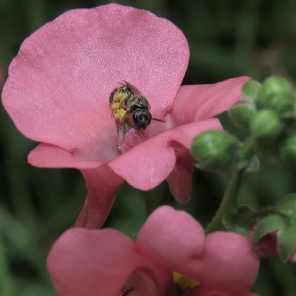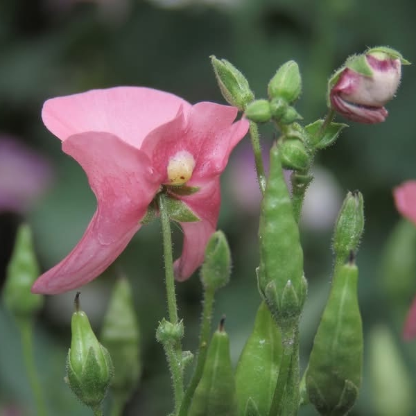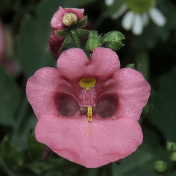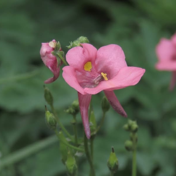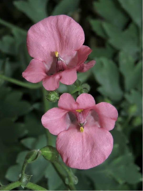 (栽培種;原生於南非;台灣物種名錄查無此學名及中文名;多年生草本;莖條細長(有直立性和匍匐性兩型);單葉對生,三角狀卵形;總狀花序;每朵花具有2枚花距)
