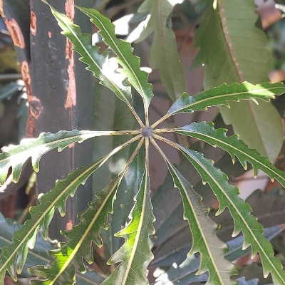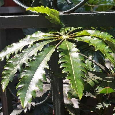 (南鵝掌柴屬) ==非台灣原生種== ●孔雀木(Plerandra elegantissima) (栽培種;維基百科標示南鵝掌柴屬,屬名Schefflera) |