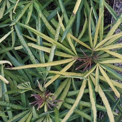 ==非台灣原生種== ●五爪木(Osmoxylon lineare) (栽培種;原產於菲律賓;常綠灌木;掌狀複葉,互生,枝頂叢生狀;小葉3~6枚,通常5枚,故有「五爪」之名;裂片線狀披針形,全緣(或不明顯疏鋸齒緣);複繖形花序,頂生;第一層花序先開,結果後,第二層花序再開;果實球形,成熟紫黑色) ●斑葉五爪木(Osmoxylon lineare 'Variegata') (栽培種) •黃金五爪木(Osmoxylon lineare 'Goldfingers') (栽培種) |