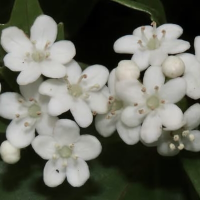 (台灣特有種;大部分的植株地生,偶見著生;常綠灌木或小喬木,株高可達3公尺或更高;單葉對生,橢圓形至長橢圓形,淺鋸齒緣,先端銳尖,側脈約5~6對;聚繖花序,著生於枝端,排成圓錐狀,花冠筒5瓣,白色;果實,橢圓形,果徑約1公分,成熟紅色至暗紫色) ==非台灣原生種== ●香莢蒾(Viburnum farreri) (栽培種) ●琉球莢蒾(Viburnum suspensum、長筒莢蒾) (栽培種;台灣物種名錄查無此學名及中文名;灌木;小枝密被短毛;單葉對生,卵形至長橢圓形,圓細齒緣;聚繖花序,腋生或頂生;花冠長筒狀,花瓣5枚,白色;核果圓形,成熟紅色) ●紅蕾莢蒾(Viburnum carlesii) (栽培種) •繡球莢蒾(Viburnum macrocephalum、中華木繡球) (栽培種) •蝶花莢蒾(Viburnum hanceanum、蝴蝶戲珠花) (栽培種) ●地中海莢蒾(Viburnum tinus) (國外拍攝;常綠灌木,樹冠呈球形,冠徑可達3公尺;葉片橢圓形;聚繖花序,花蕾粉紅色,盛開後花白色;果實卵形,深藍黑色) ●歐洲木繡球 (栽培種) |