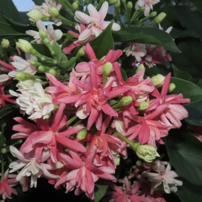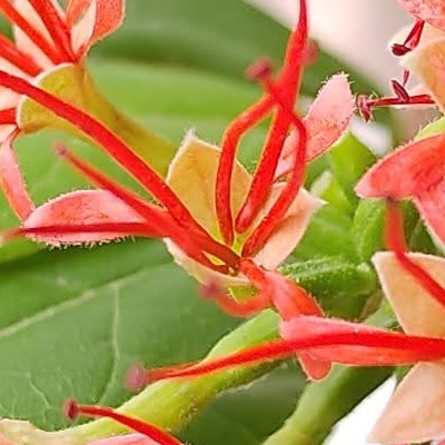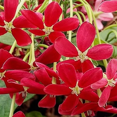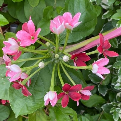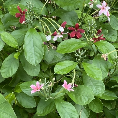 ●小花使君子(Combretum densiflorum、Quisqualis conferta、密花使君子 ) (栽培種;世界植物在線 POWO 標示 Quisqualis conferta = Combretum densiflorum,皆為有效學名,附有照片;中國植物智標名小花使君子,附有照片) |