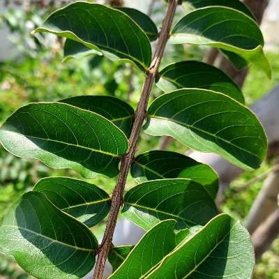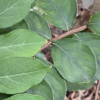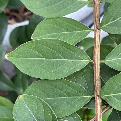 千屈菜科紫薇屬 更多照片: 20210602_09 照片:蟹老闆拍攝於新北市中和 照片1:九芎葉子有短柄 照片2:紫薇葉子無葉柄 照片3:紫薇枝條長在九芎木上 |